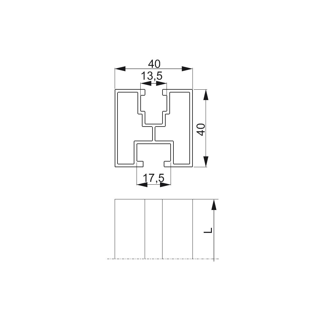 Šířka drážek v Profilu zabraňuje přetočení skrutiek a šestihranných matíc (M8 pre horní drážku a M10 pre spodní drážku) speciální prierez Profilu pre zvýšenou pevnost.
