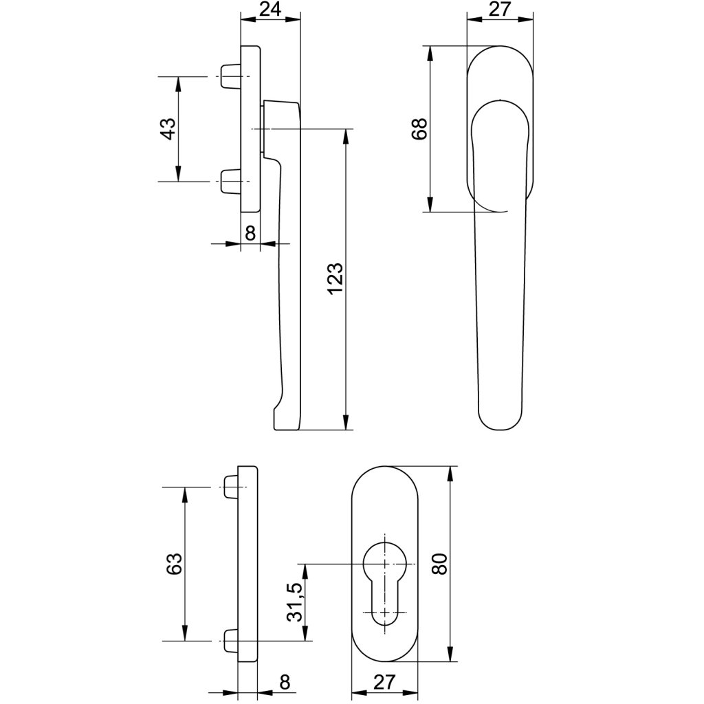 - Rozmery rozety (rukoväť): 27 x 68 x 8 mm (oválna)
