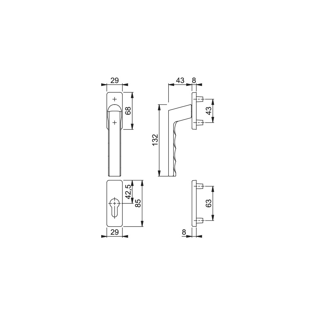- Rozmery PZ rozety: 29 x 85 x 8 mm