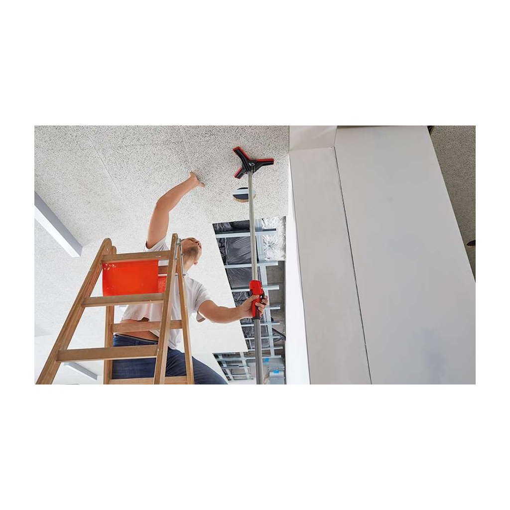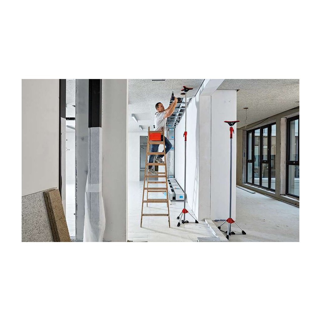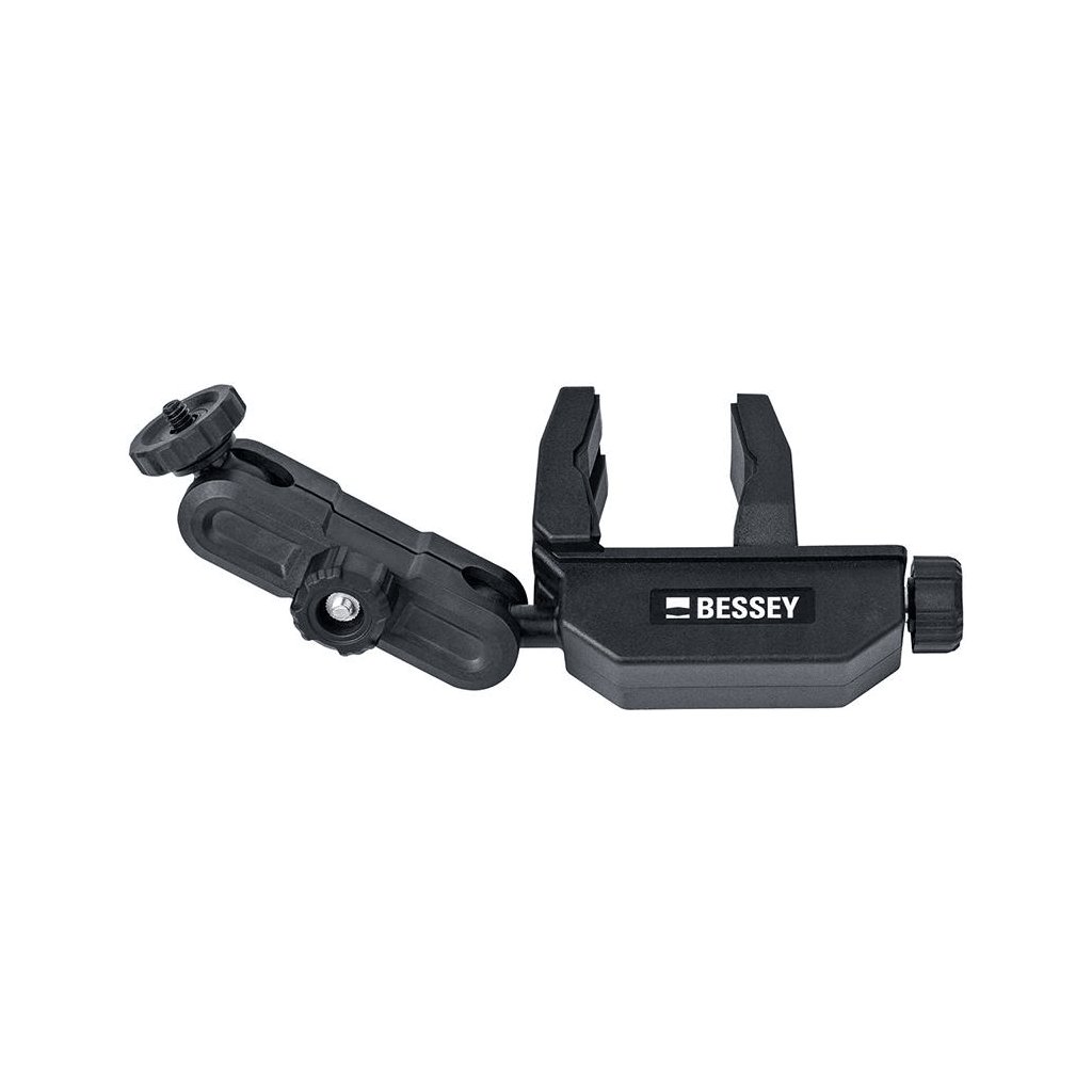- Univerzálny držiak s ¼ závitovou svorkou na upevnenie pracovných nástrojov, ako je laser, kamera, stavebné svetlo, ako aj stropné a montážne podpery, profily alebo rebríky.