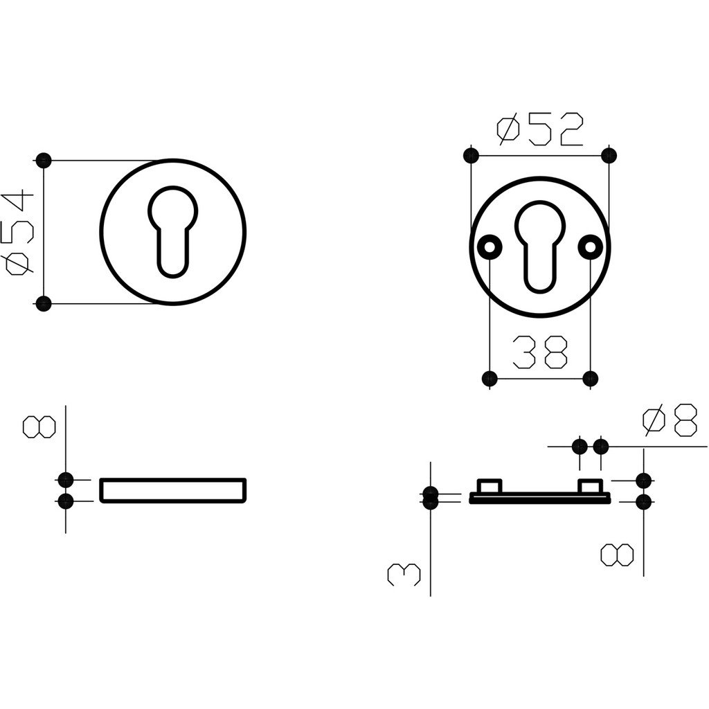 Vnútorná kruhová bezpečnostná rozeta, PZ, 54x8 mm - nehrdzavejúca oceľDodatočné parametre