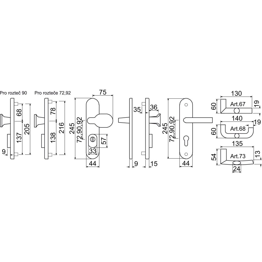 - Rukoväť, na výber z troch tvarov (čl. 67, 68, 73).