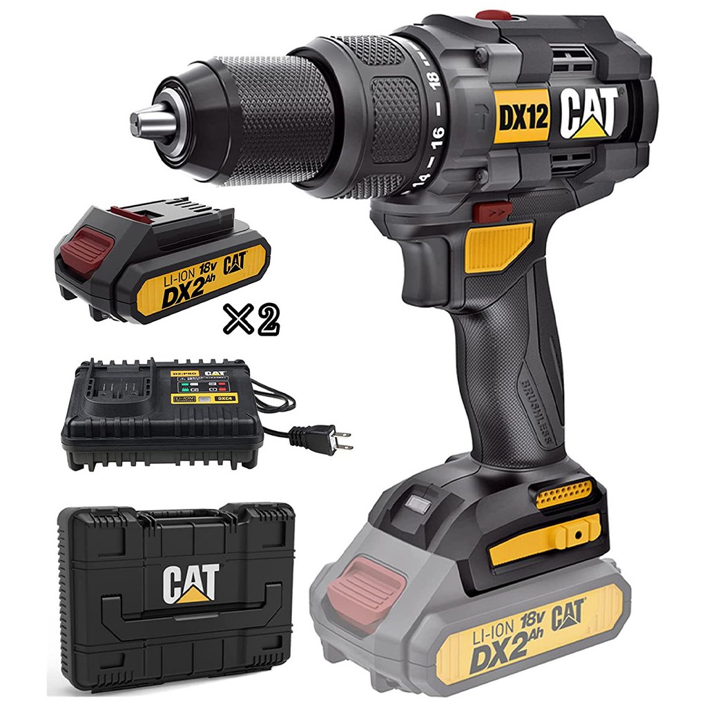 Bezuhlíkový príklepový vŕtací stroj DX12 pre maximálnu účinnosť pri práci s drevom, kovom a murivom. Špičkový bezkartáčový motor, dvojrýchlostná prevodovka a vysoký krútiaci moment 65 Nm robia z vŕtačky DX12 spoľahlivého pomocníka pre náročné aplikácie. Prevádzku zabezpečuje akumulátor s kapacitou 2Ah (2x akumulátor a 4A rýchlonabíjačka sú súčasťou dodávky). kapacita vŕtania príklepovej vŕtačky Caterpillar DX12 je 40 mm (drevo), 13 mm (kov) a 16 mm (murivo).