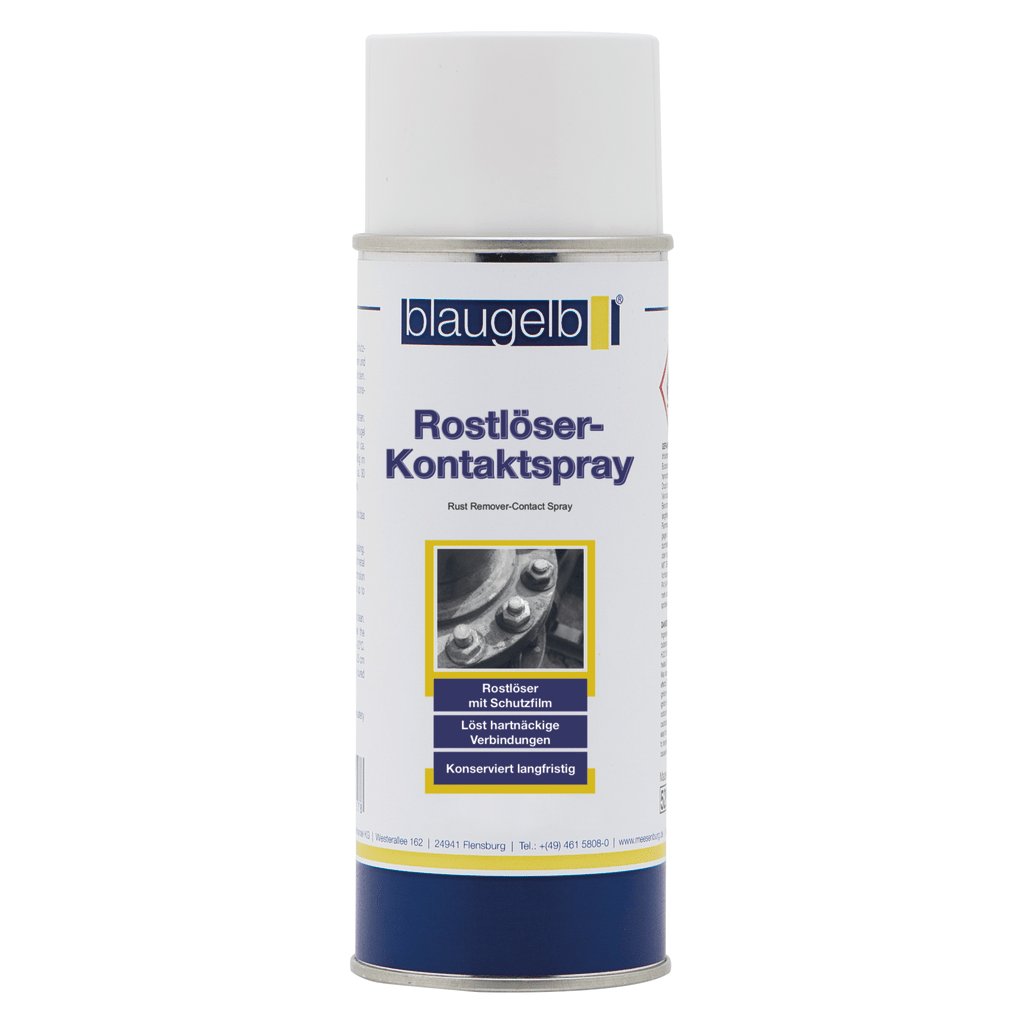Penetruje pod prítomnú hrdzu, uvoľňuje ju a odstraňuje aj oleje, živice, decht a olejový uhlík. Ošetrené diely sú dlhodobo konzervované a chránené proti ďalšej korózii. Uvoľňovač hrdze - kontaktný sprej blaugelb automaticky preniká do úzkych miest a uľahčuje odstránenie dielov. Čistí, ošetruje, impregnuje a trvalo chráni povrchy. Odstraňuje vŕzganie a nezvyčajné zvuky pri chode. Uvoľňovanie hrdze - kontaktný sprej blaugelb možno použiť na to, aby sa aj pevne usadené diely dali opäť do pohybu.