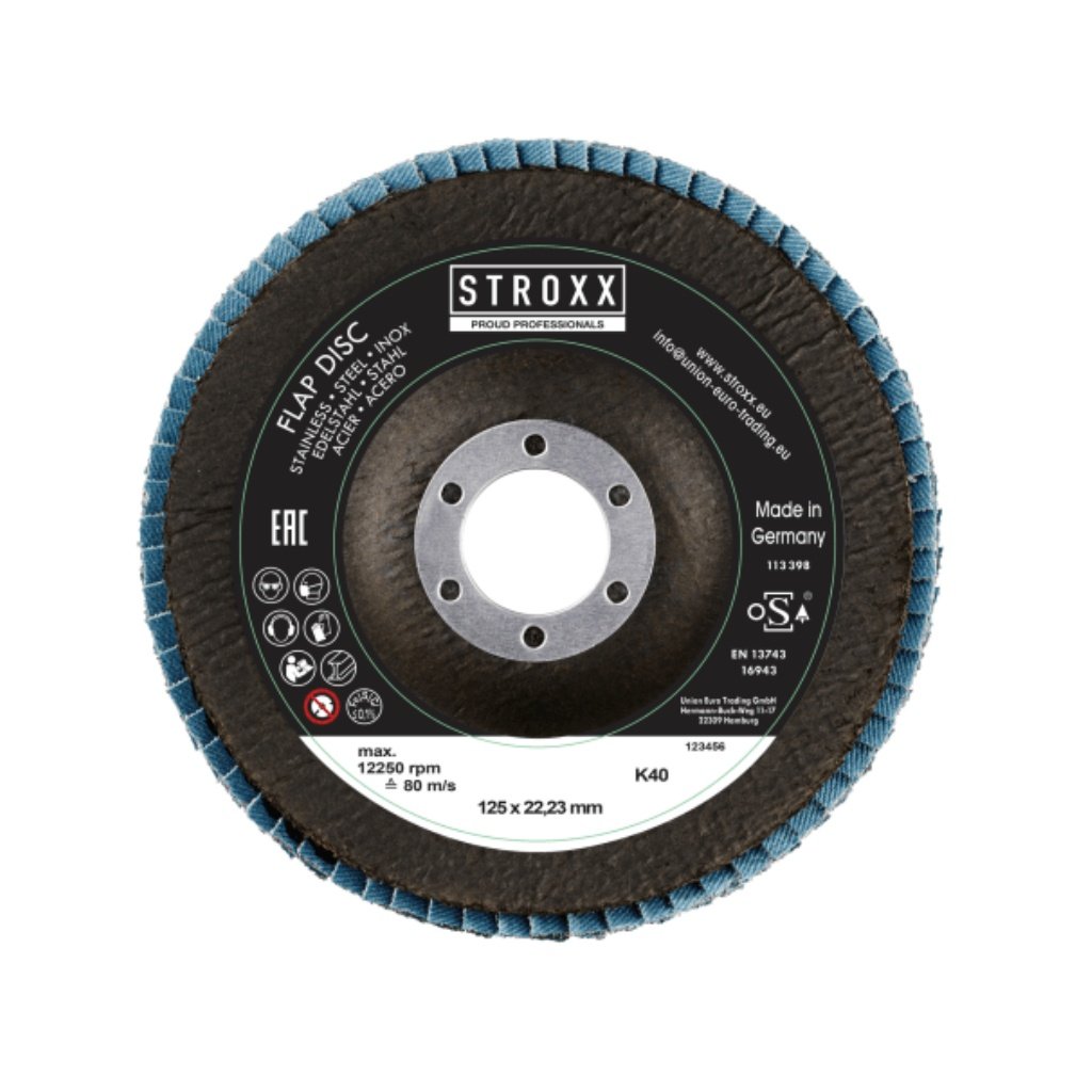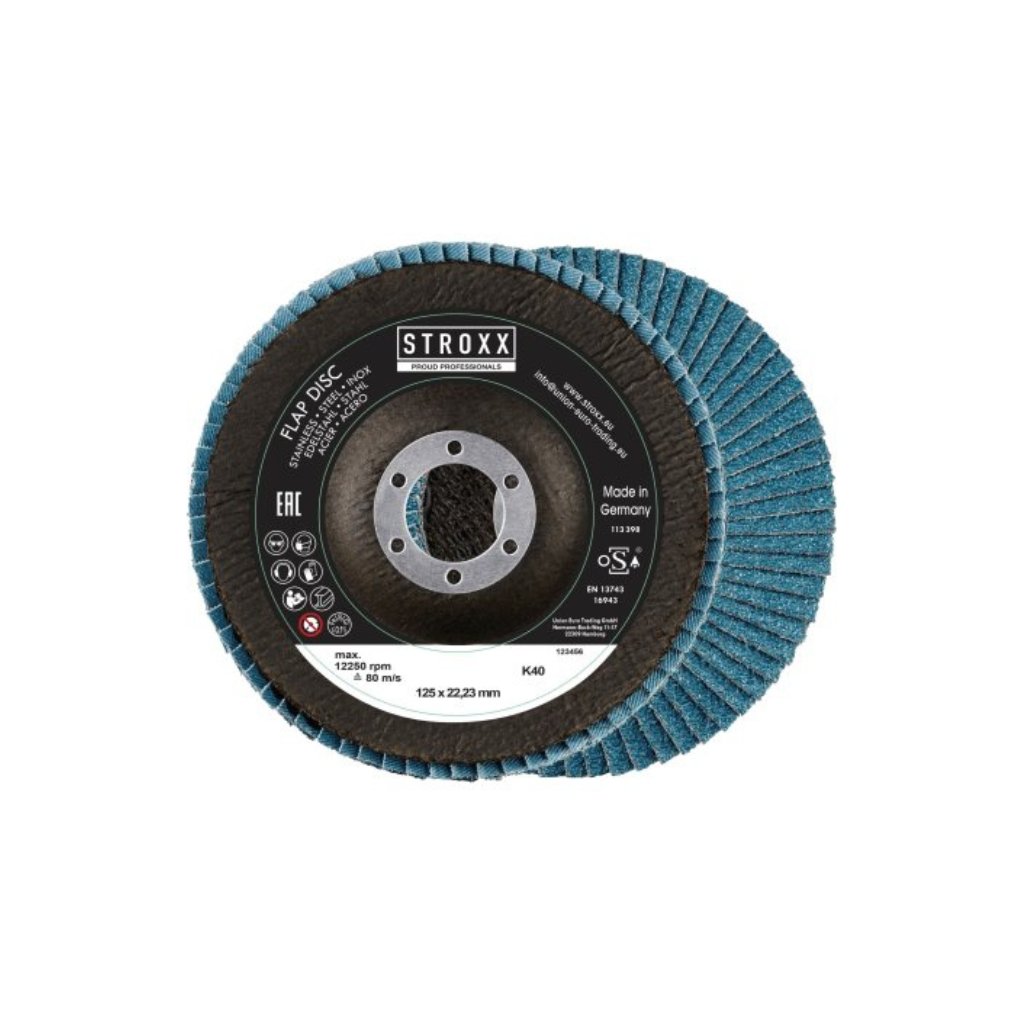 Lameľový kotúč vyrobený z plátenných lamiel so zrnom zirkónia zo sklených vlákien vhodný na brúsenie ocele, hliníka, dreva, neželezných kovov a iných materiálov. Lamelový kotúč STROXX má veľmi dobrý brúsny výkon na nehrdzavejúcich oceliach a vynikajúci brúsny výkon na oceliach.