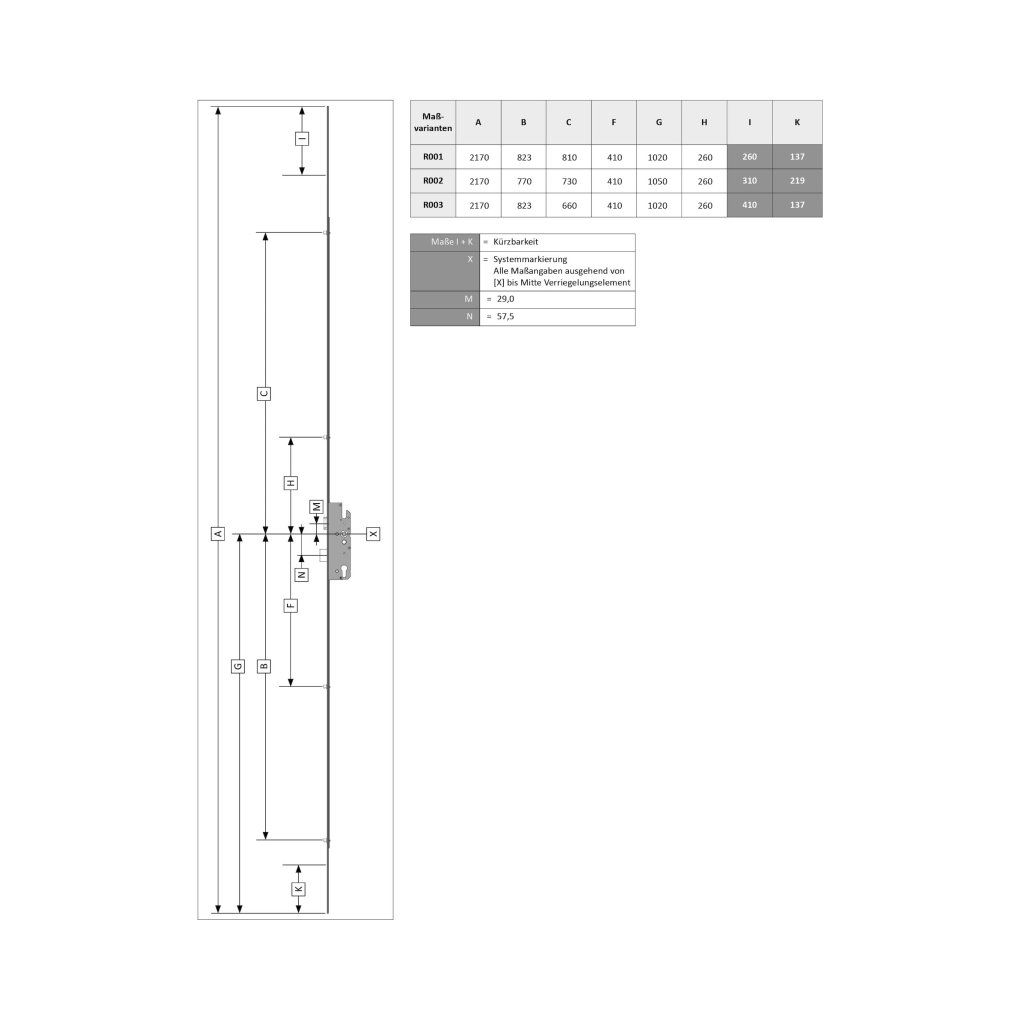 Viacbodový tyčový zámok KFV BS 2100 AN F16/40-92-8 R002 (štrbina) - s KOPIBO (náhrada za 3477327)