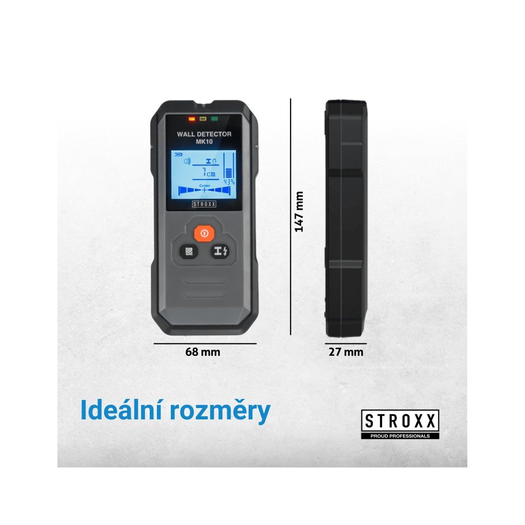 Pripravujete ako remeselník alebo domáci majster otvory do steny na upevnenie skriniek, políc, televízorov alebo reproduktorov? Bojíte sa však vŕtať v prípade, že by ste zasiahli kábel alebo, nedajbože, kovovú rúru? Riešením je univerzálny detektor STROXX MK10. Dokáže odhaliť nielen elektrické vedenie a kovové predmety, ale dokonca aj drevené konštrukcie.