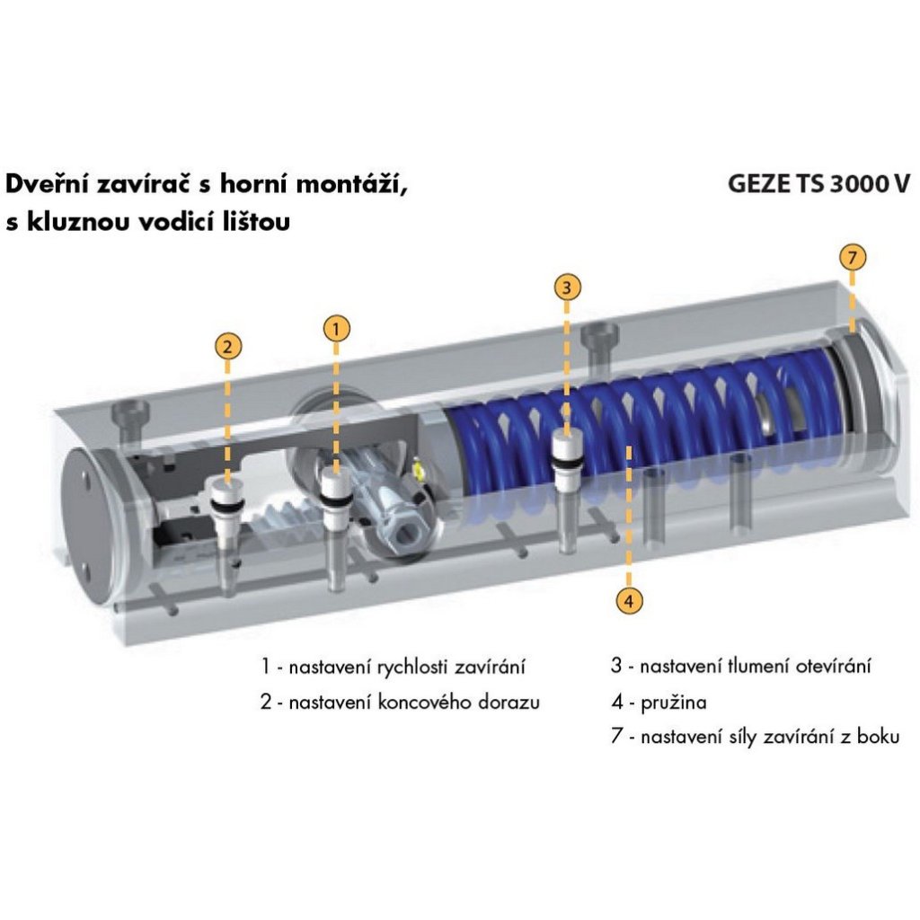Dverový zatvárač GEZE TS 3000 V, bez klznej lišty, biely RAL9016