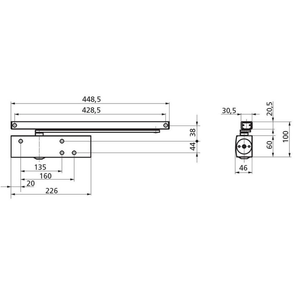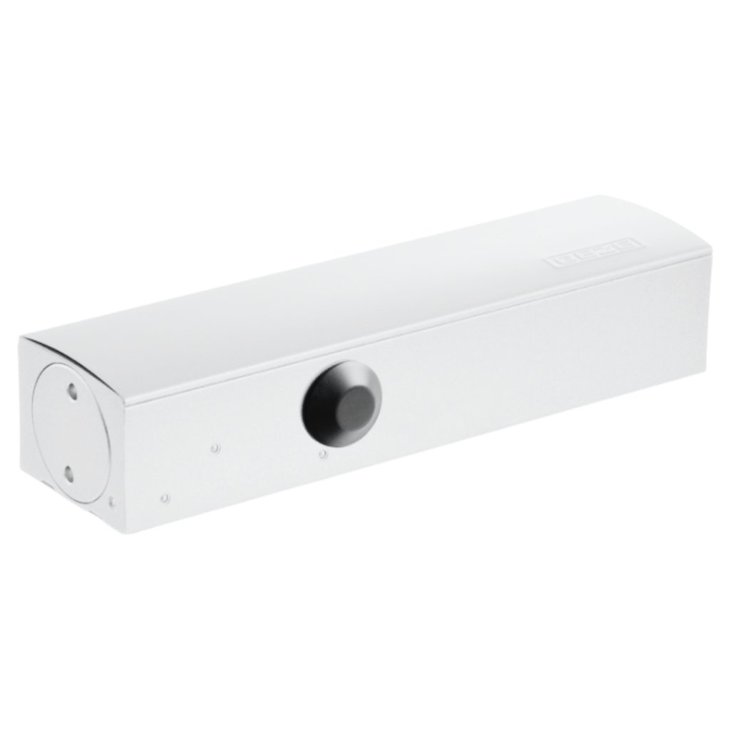 Zatvárač dverí s hornou montážou je určený na spoľahlivé a bezpečné zatváranie jednokrídlových otočných dverí. Vďaka sklznej lište zabezpečuje tichý a plynulý chod dverí a umožňuje jednoduché nastavenie sily zatvárania v rozsahu EN 1 – 4. Rýchlosť zatvárania aj hydraulický doraz sú nastaviteľné spredu, čo uľahčuje montáž a údržbu.