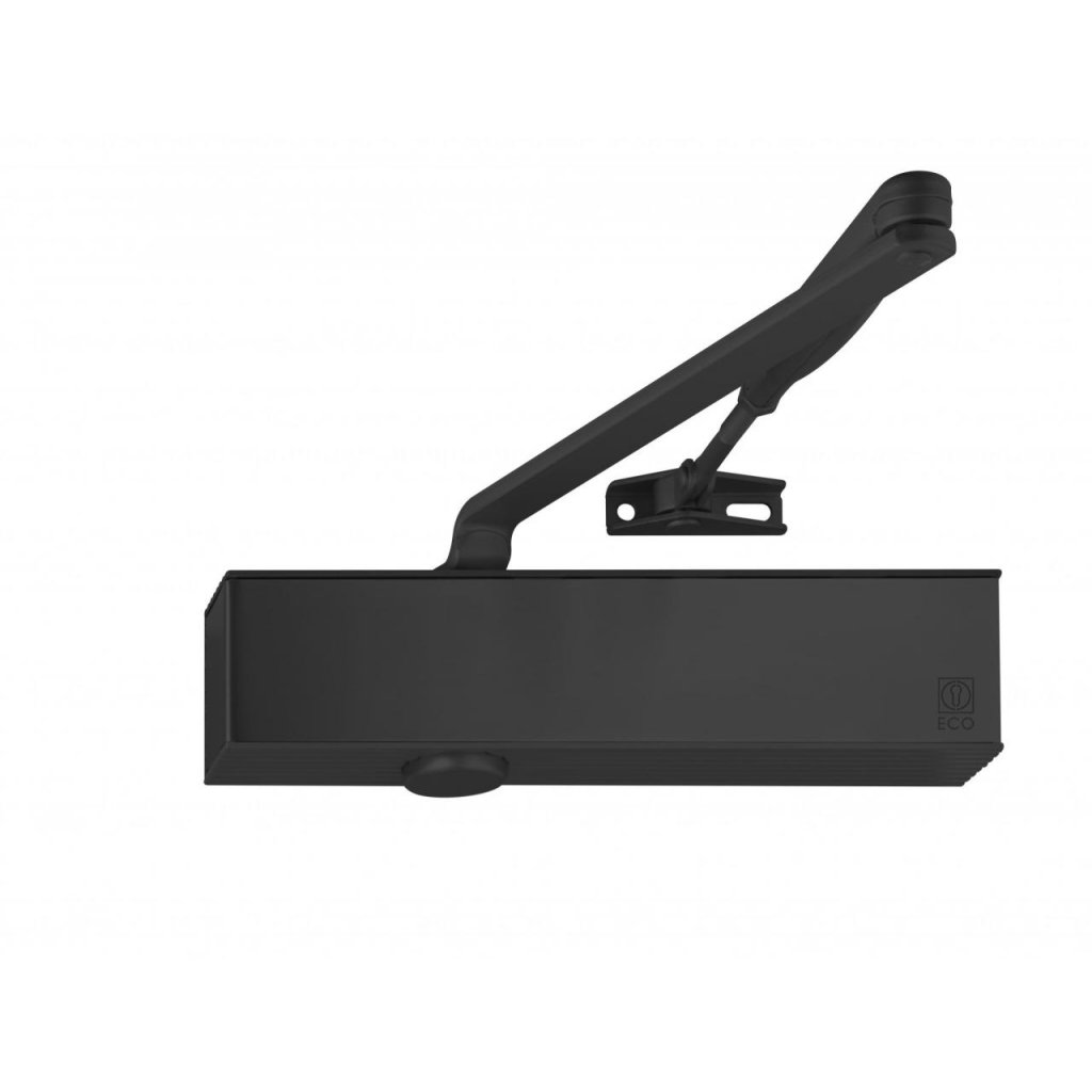 Dverový zatvárač TS-50, s lomeným ramienkom, EN2–6, čierny RAL9005, vrátane montážnej dosky