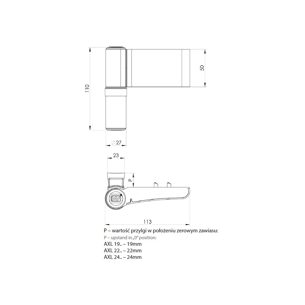 Dverový záves AXL 19 pre plastové dvere (16 - 22 mm falc), farba biela RAL9016. Pre pravú a ľavú stranu dverí.
