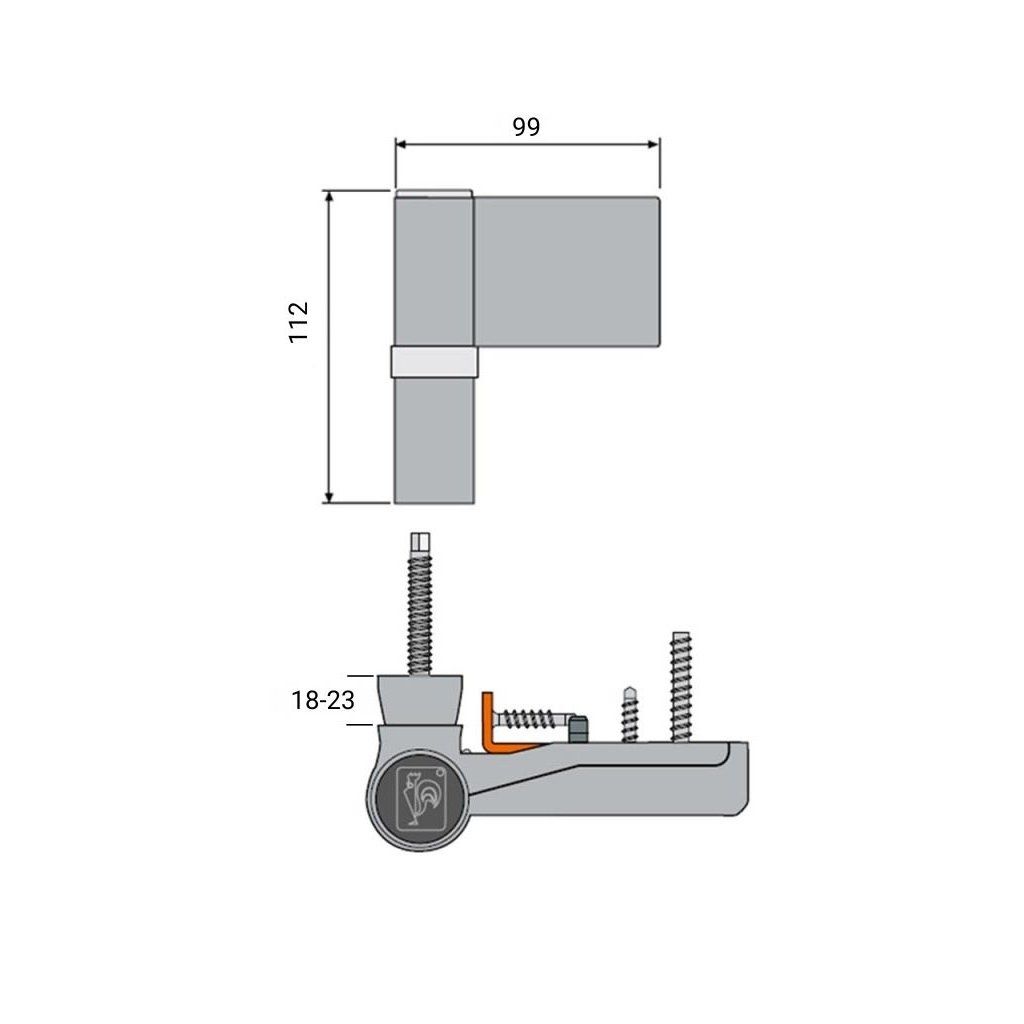 - Spôsob upevnenia: Upevnenie závesu k profilom pomocou dodaných upevňovacích skrutiek, možno použiť aj stupňovité skrutky Hahn.