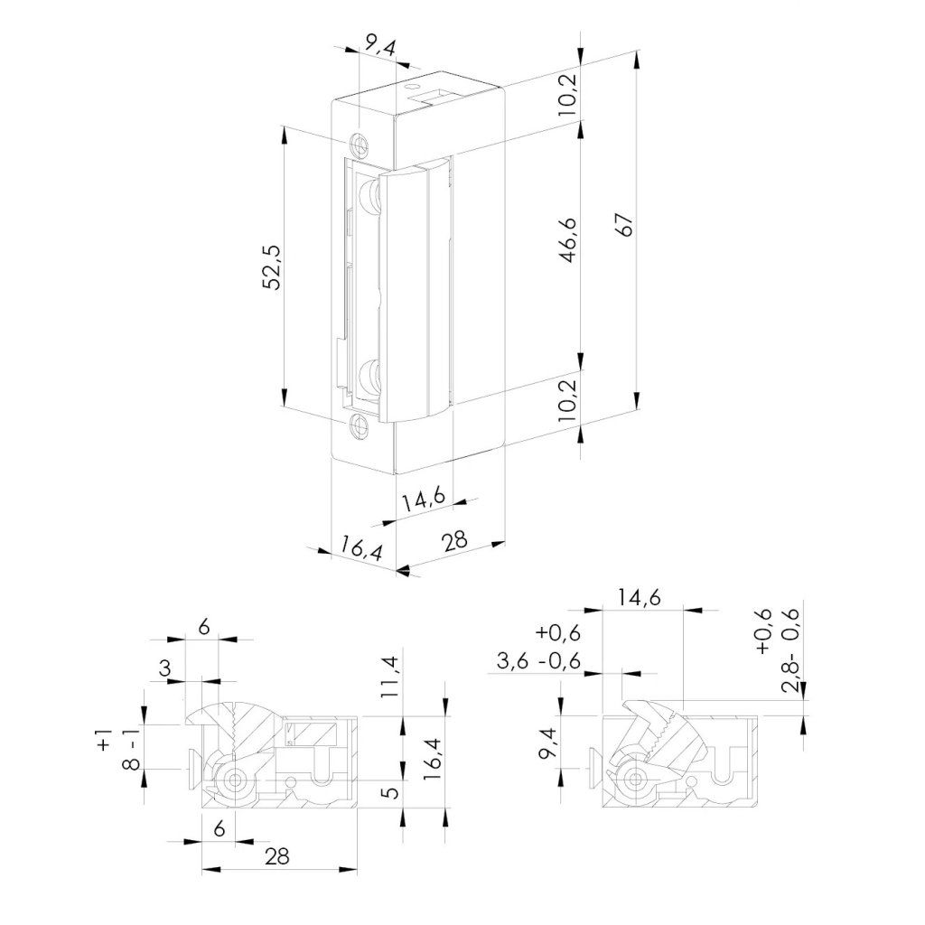 El. otvárač D-41 2NF STANDARD, bez mech. blokácie, 4–8 V AC/DC