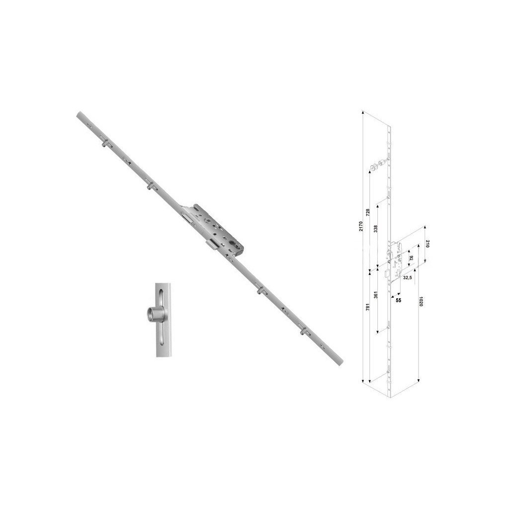 Vzdialenosť od stredu zámku po spodný koniec tyče: | 1020 mm |