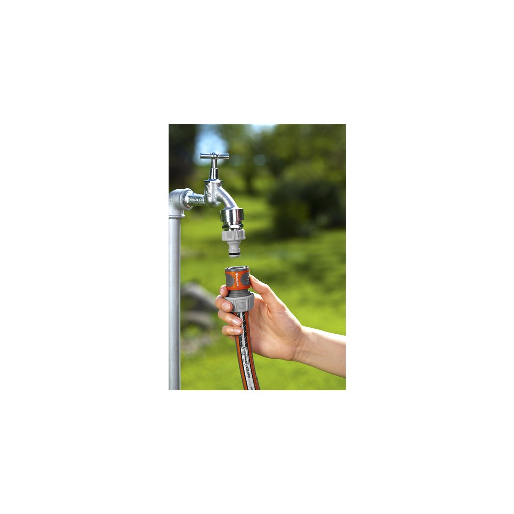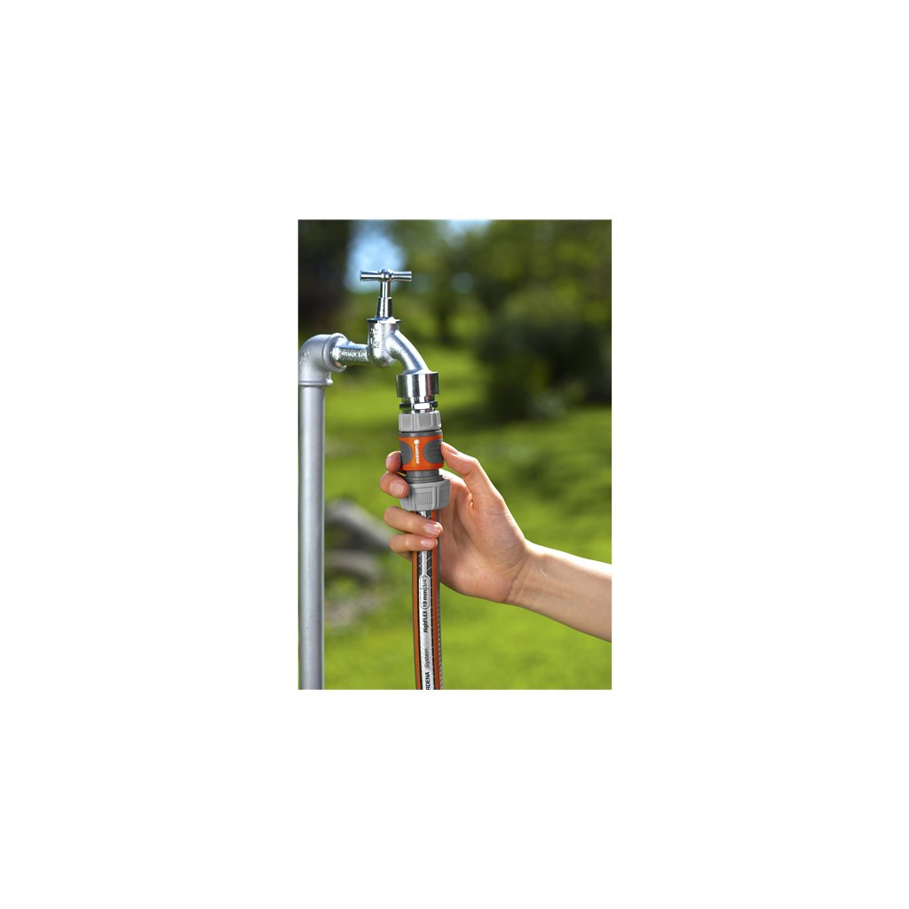 Rýchlospojka od spoločnosti GARDENA umožňuje rýchle a pohodlné pripojenie hadice. Jednoduchým potiahnutím sa hadica uvoľní. Rýchlospojka je vhodná pre hadice s priemerom 19 mm (3/4"). Hadice možno týmto spôsobom ľahko pripojiť ku kohútiku.