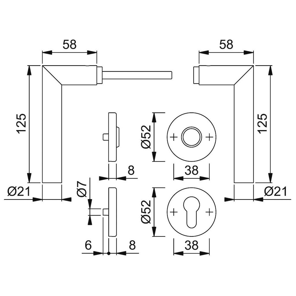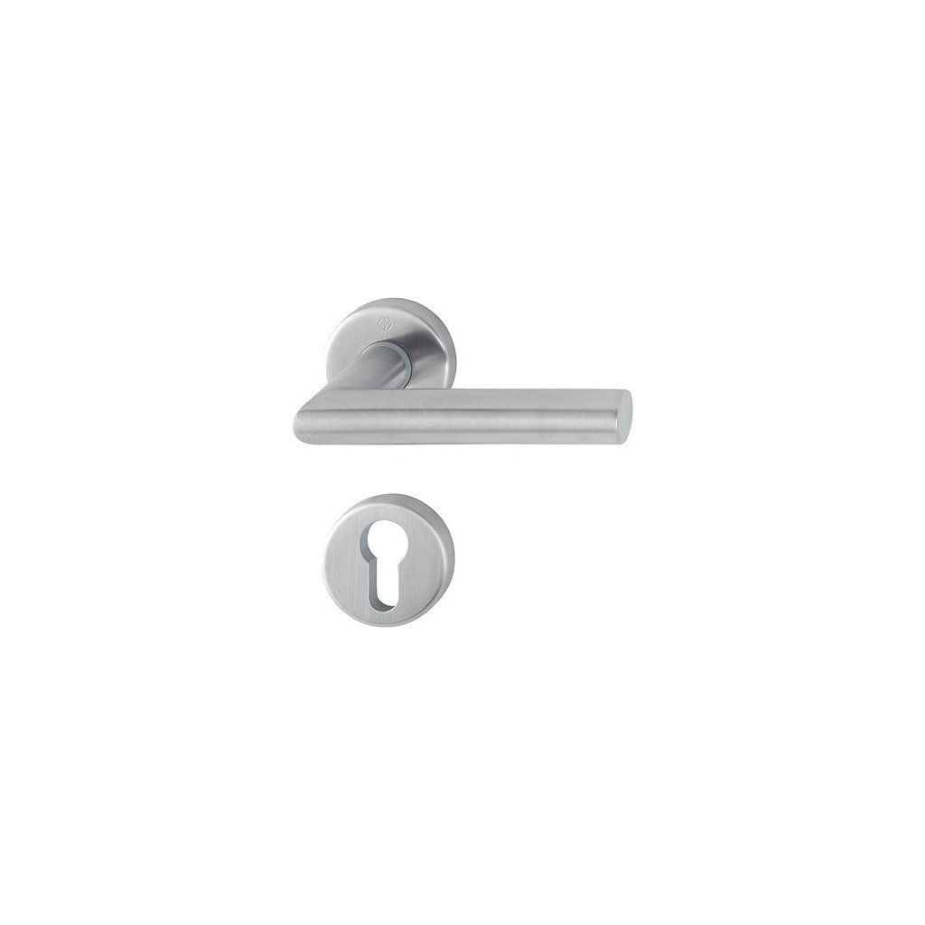 Súprava kľučka + kľučka HOPPE AMSTERDAM, verzia PZ, s okrúhlymi rozetami pre valec, nehrdzavejúca oceľ F69. Obsahuje štvorhran 8 mm a skrutky pre dvere s hrúbkou 37 až 42 mm.Dodatočné parametre