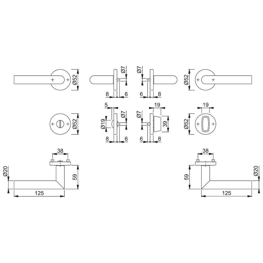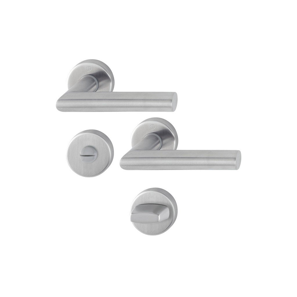 Súprava kľučka + madlo HOPPE AMSTERDAM, WC verzia, s okrúhlymi rozetami, nehrdzavejúca oceľ F69. Obsahuje štvorhran 8 mm a skrutky pre dvere s hrúbkou 37 až 42 mm.Dodatočné parametre