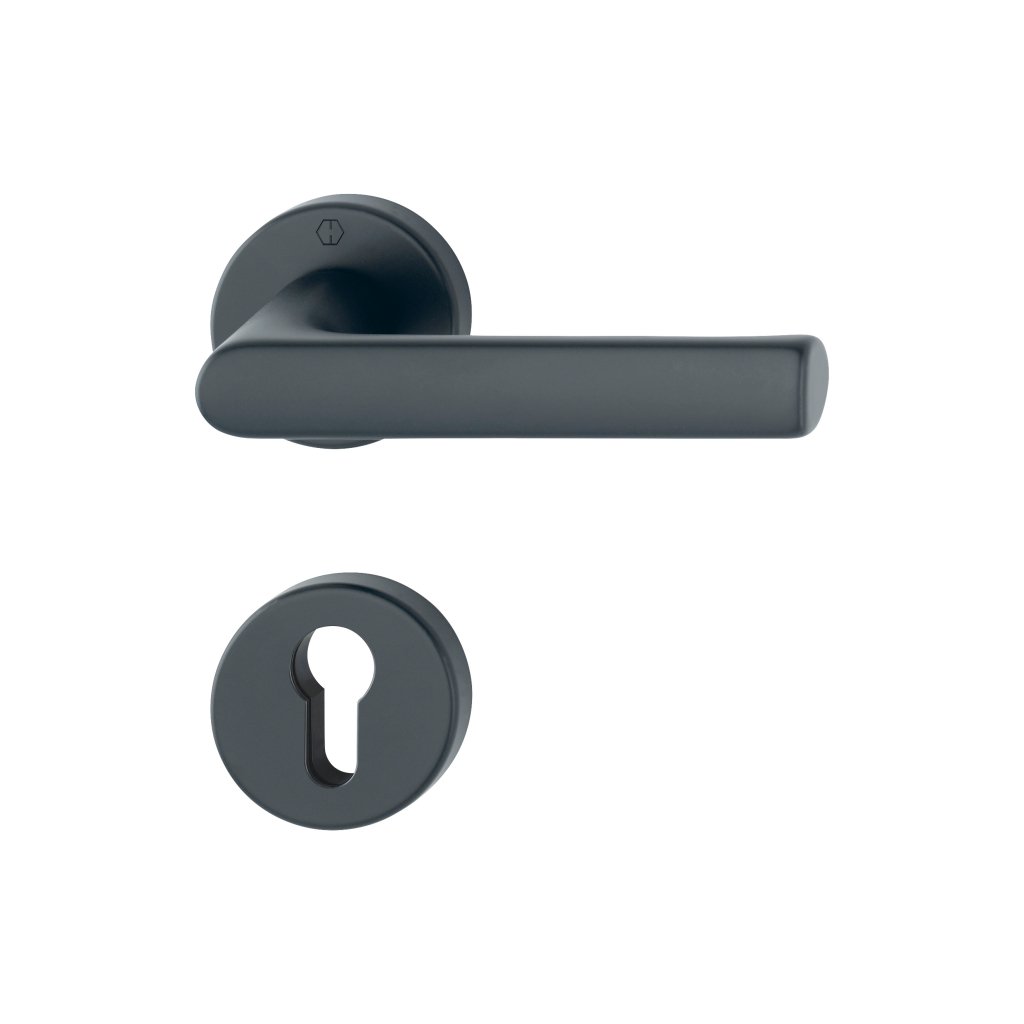 HOPPE Hamburg hliníková sada kľučiek pre interiérové dvere, s rozetami pre cylindrickú vložku.