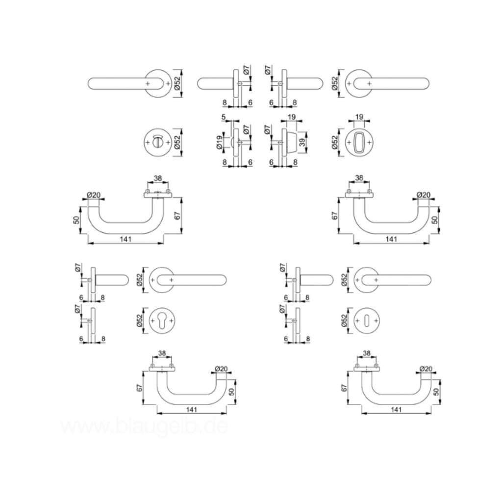 Rozetové kovanie ZT/DGT U-FORM BB s kruhovými rozetami, pre TS 37-42 mm, matná nehrdzavejúca oceľDodatočné parametre