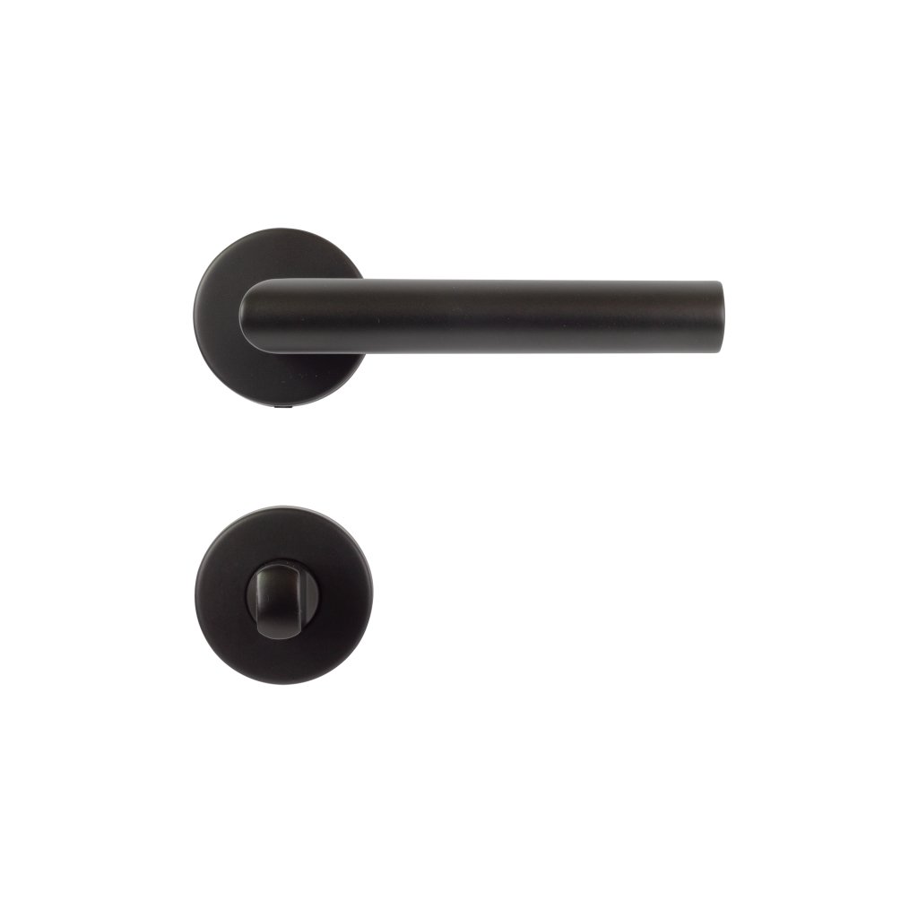 Interiérové rozetové kovanie STROXX TH104, kľučka/kľučka, okrúhle rozety, WC, čierna