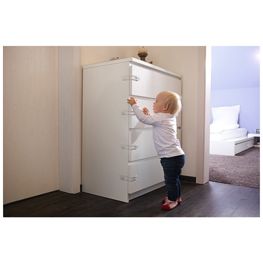 - Ochráni deti pred nebezpečnými látkami, ktoré môžu byť uložené v skrinke alebo zásuvke