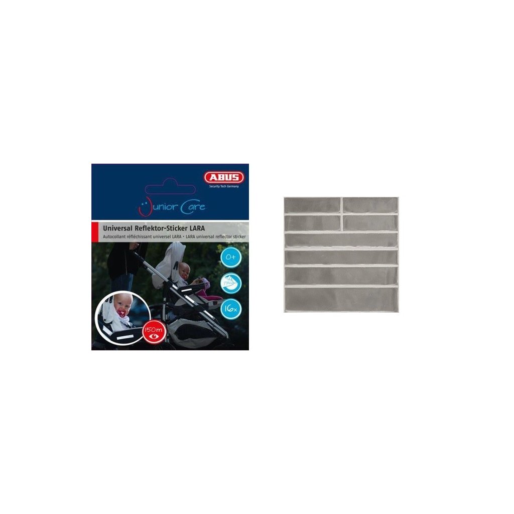 Zabezpečte lepšiu viditeľnosť pri prechádzkach s deťmi pomocou reflexných prvkov Jc6416 Lara od spoločnosti ABUS. Stačí nalepiť tieto reflexné nálepky na kočík alebo bicykel a okamžite zvýšite svoju viditeľnosť za zníženej viditeľnosti alebo v tme až na stopäťdesiat metrov. Tieto pásky Jc6416 Lara sa ľahko aplikujú jednoduchým nalepením. Balenie obsahuje šestnásť kusov rôznej dĺžky.