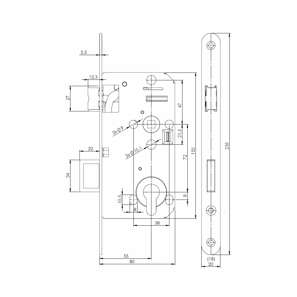 Jednobodový visiaci zámok, 20 mm lícnica, 72/55/80 mm, ZnCr
