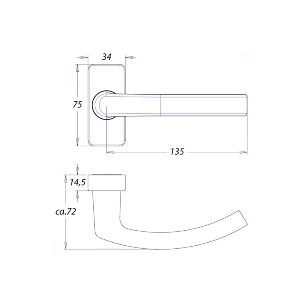 Kľučka 2000/2034 8 mm, hranatá rozeta - nerez