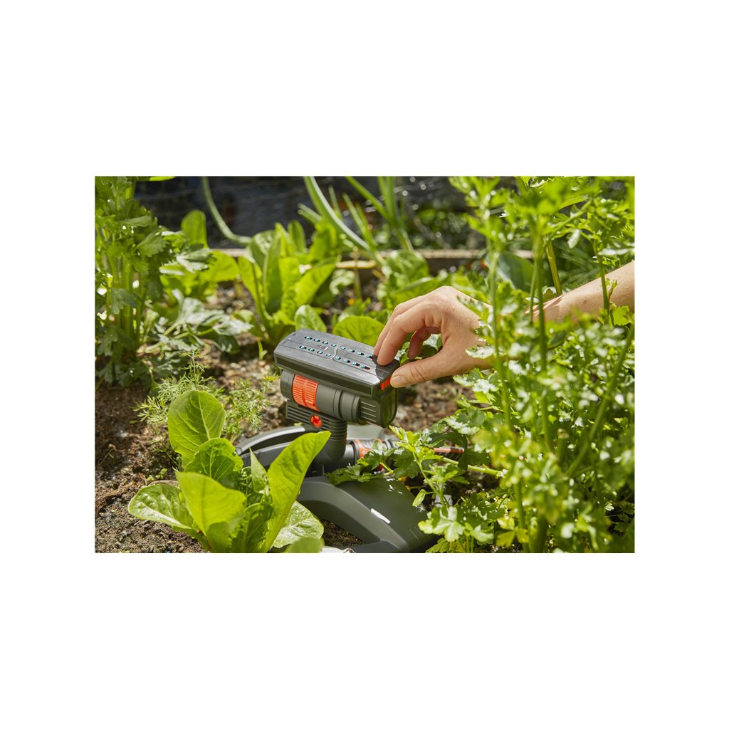 - Vždy pekne a rovnomerne: Trysky kompaktného štvorcestného zavlažovača AquaZoom nepretržite zabezpečujú rovnomerné a veľmi presné zavlažovanie kvetinových a zeleninových záhonov s rozlohou od 9 do 216 m². Rovnomerné zavlažovanie tiež zabraňuje tvorbe kaluží.