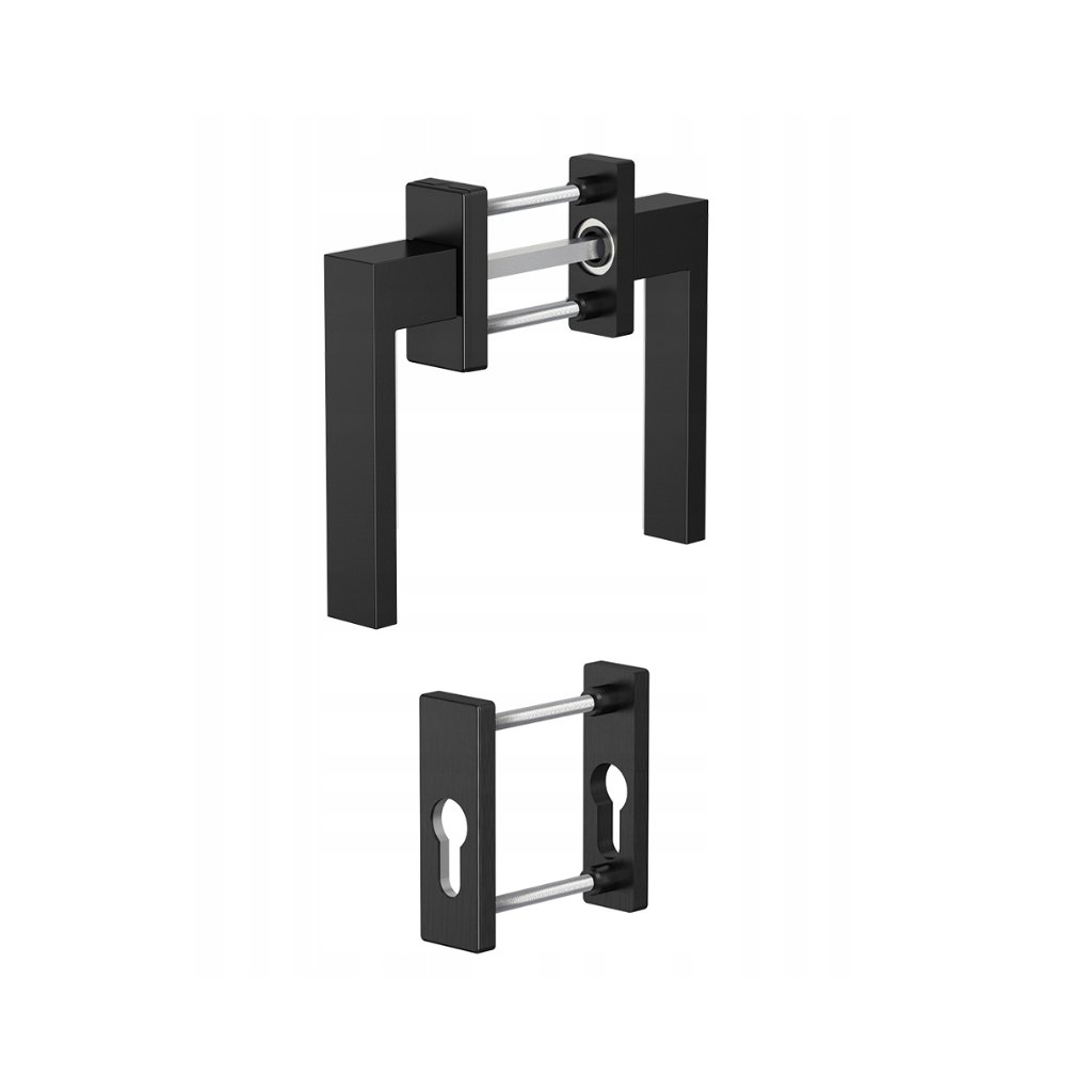 - Moderný štvorcový vzhľad obojstranných hliníkových balkónových kľučiek vrátane dištančných podložiek.