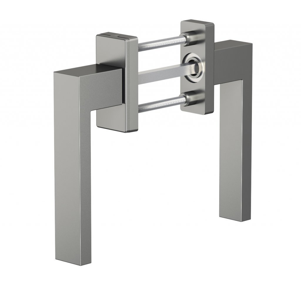 - Moderný štvorcový vzhľad obojstranných hliníkových balkónových kľučiek vrátane dištančných podložiek.