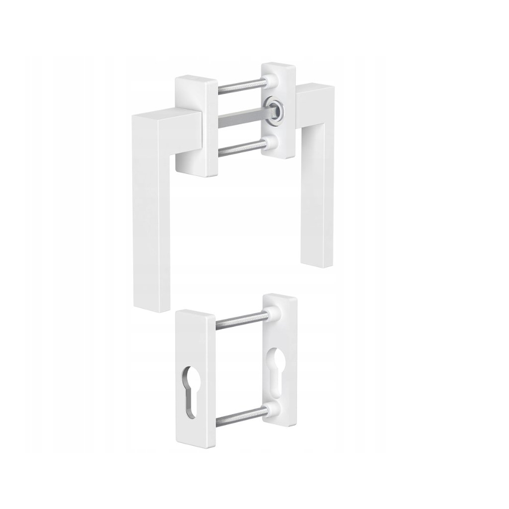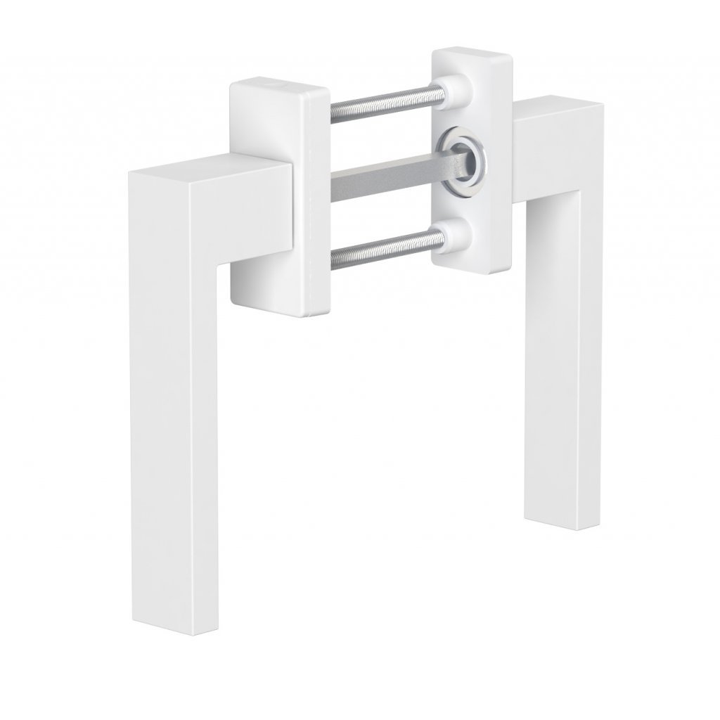 - Moderný štvorcový vzhľad obojstranných hliníkových balkónových kľučiek vrátane dištančných podložiek.