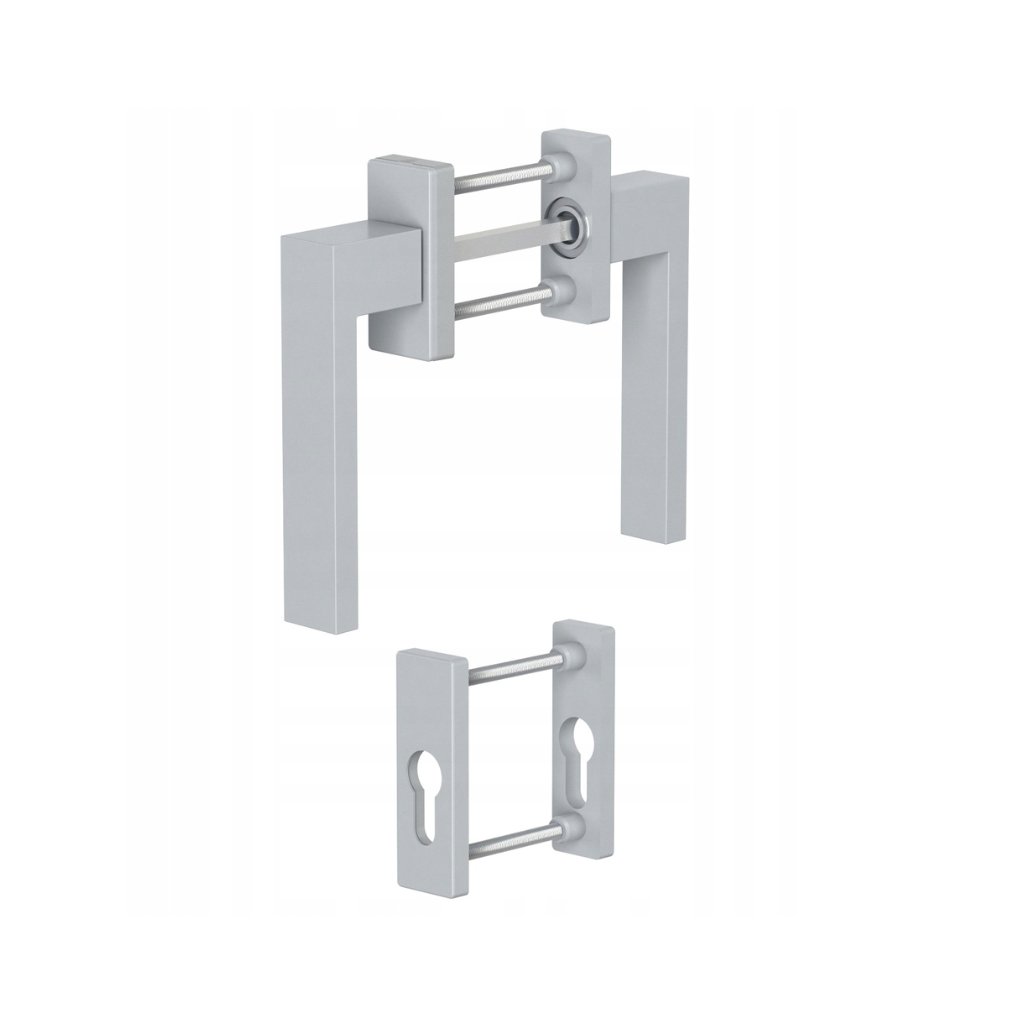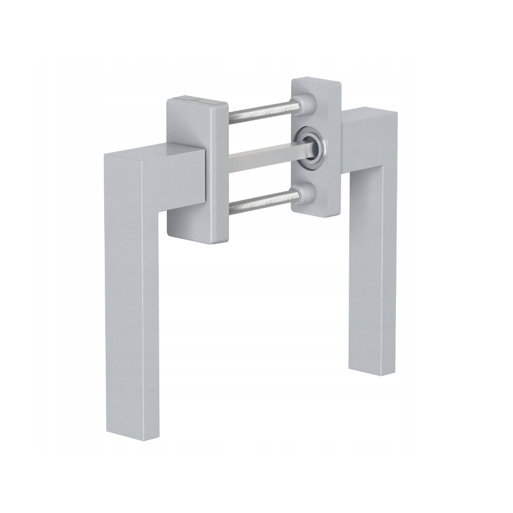 - Moderný štvorcový vzhľad obojstranných hliníkových balkónových kľučiek vrátane dištančných podložiek.