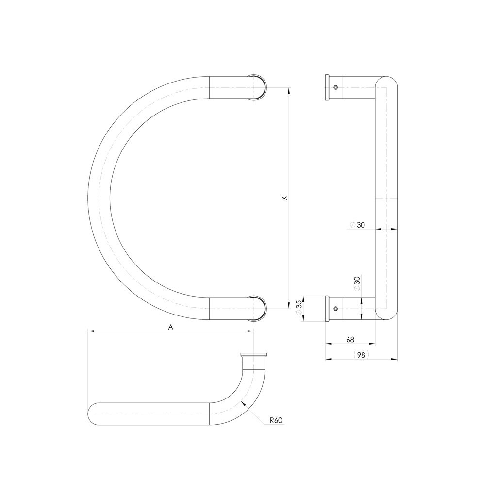 Madlo Wala M1, rozteč 300 mm, obojstranné, vrátane spojovacieho materiálu, nerez brúsená