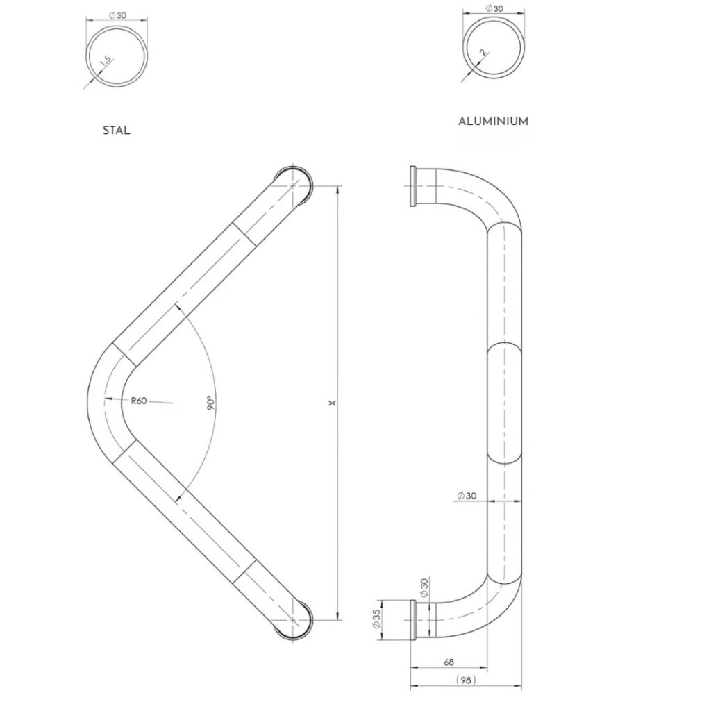 Maľovaná nehrdzavejúca oceľ zaručuje odolnosť proti korózii a dlhú životnosť. S priemerom 30 mm poskytuje pohodlné uchopenie.