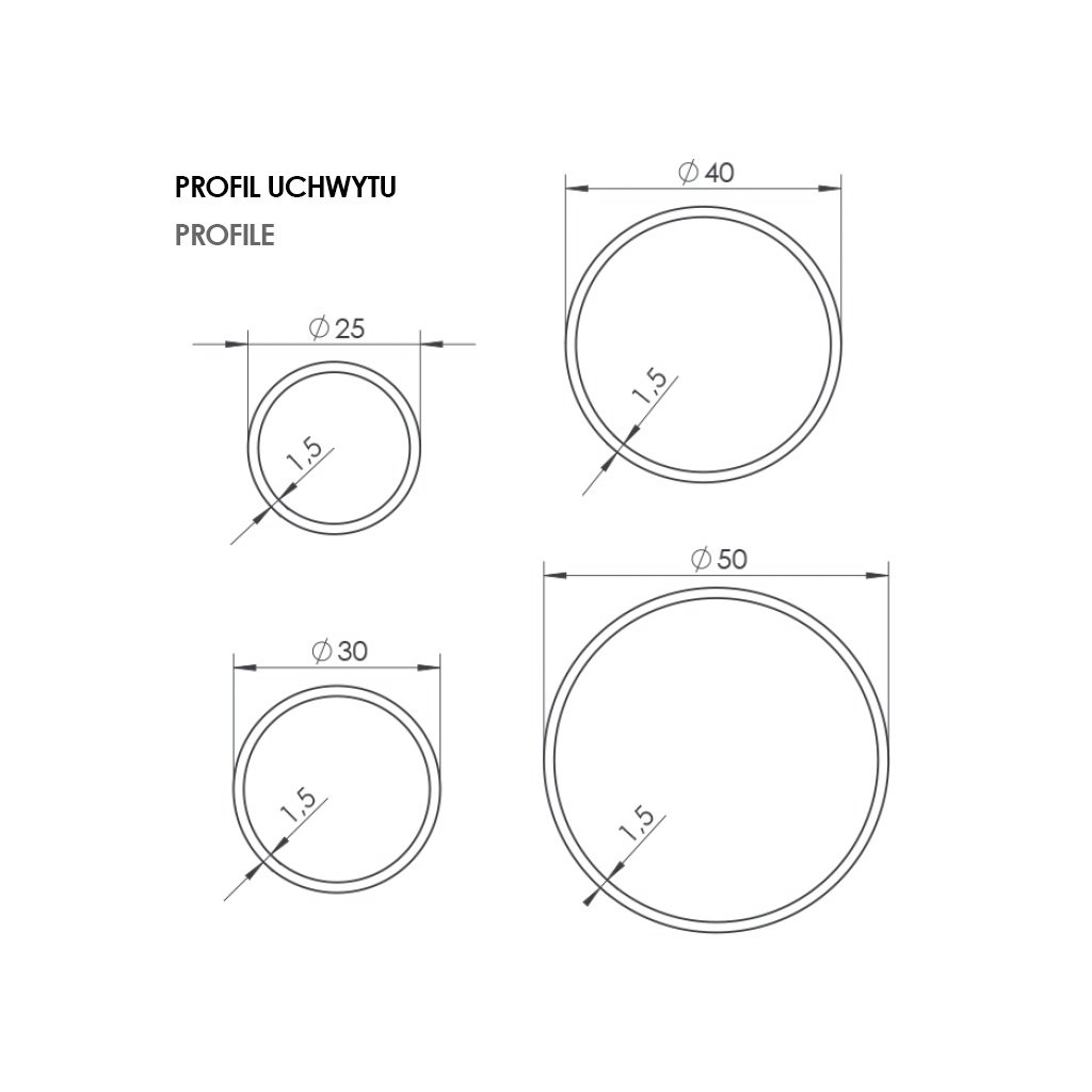 Jednostranná brúska P10 1200/1600 s priemerom 30 mm je vyrobená z brúsenej nehrdzavejúcej ocele. Rukoväte z nehrdzavejúcej ocele sú vyrobené z rúrky s priemerom 30 mm. Nerezová oceľ je odolnejšia voči korózii, odporúča sa na použitie v náročných poveternostných podmienkach, najmä pri vystavení chemikáliám a vode. Perfektne vyzerajúca rukoväť sa hodí k moderným novostavbám.
