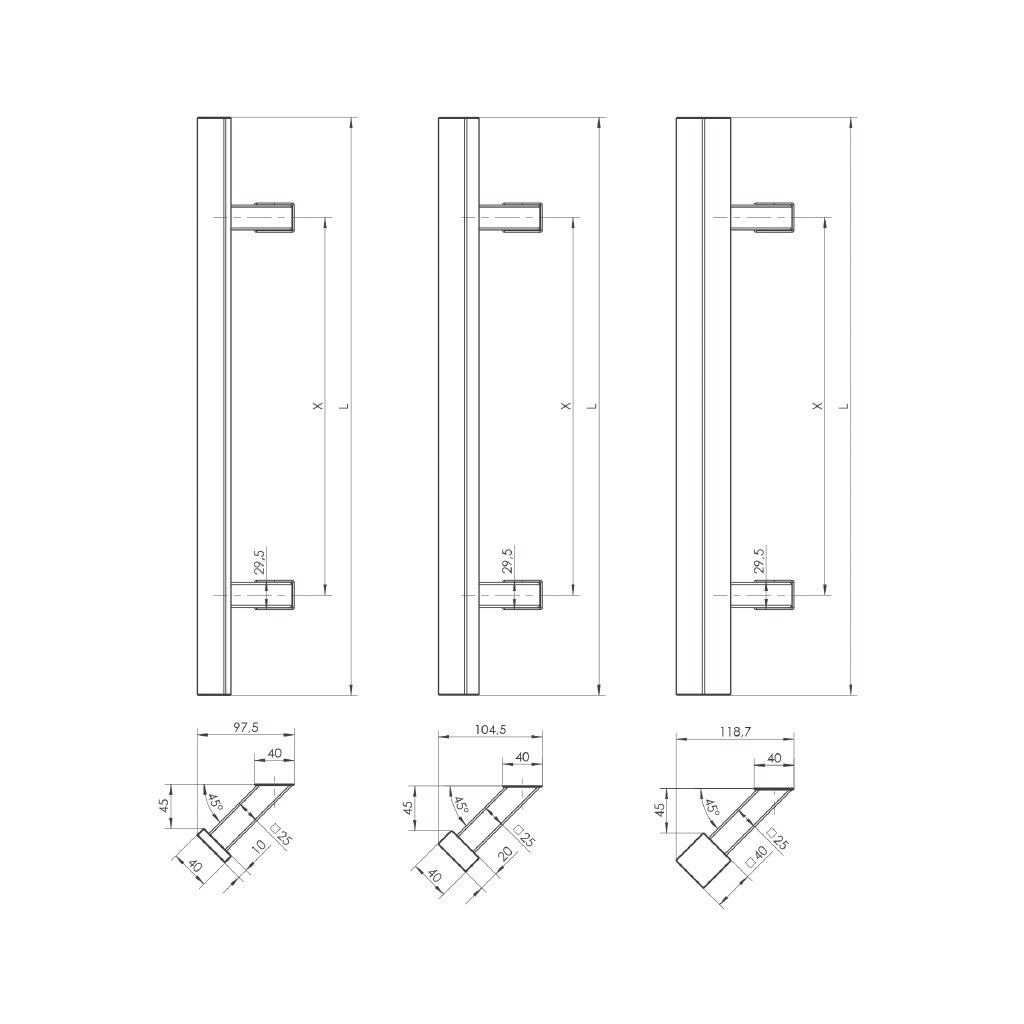 Madlo Wala Q45 800/1000 mm 40x20 mm obojstranné vrátane montáže - nerez brúsená