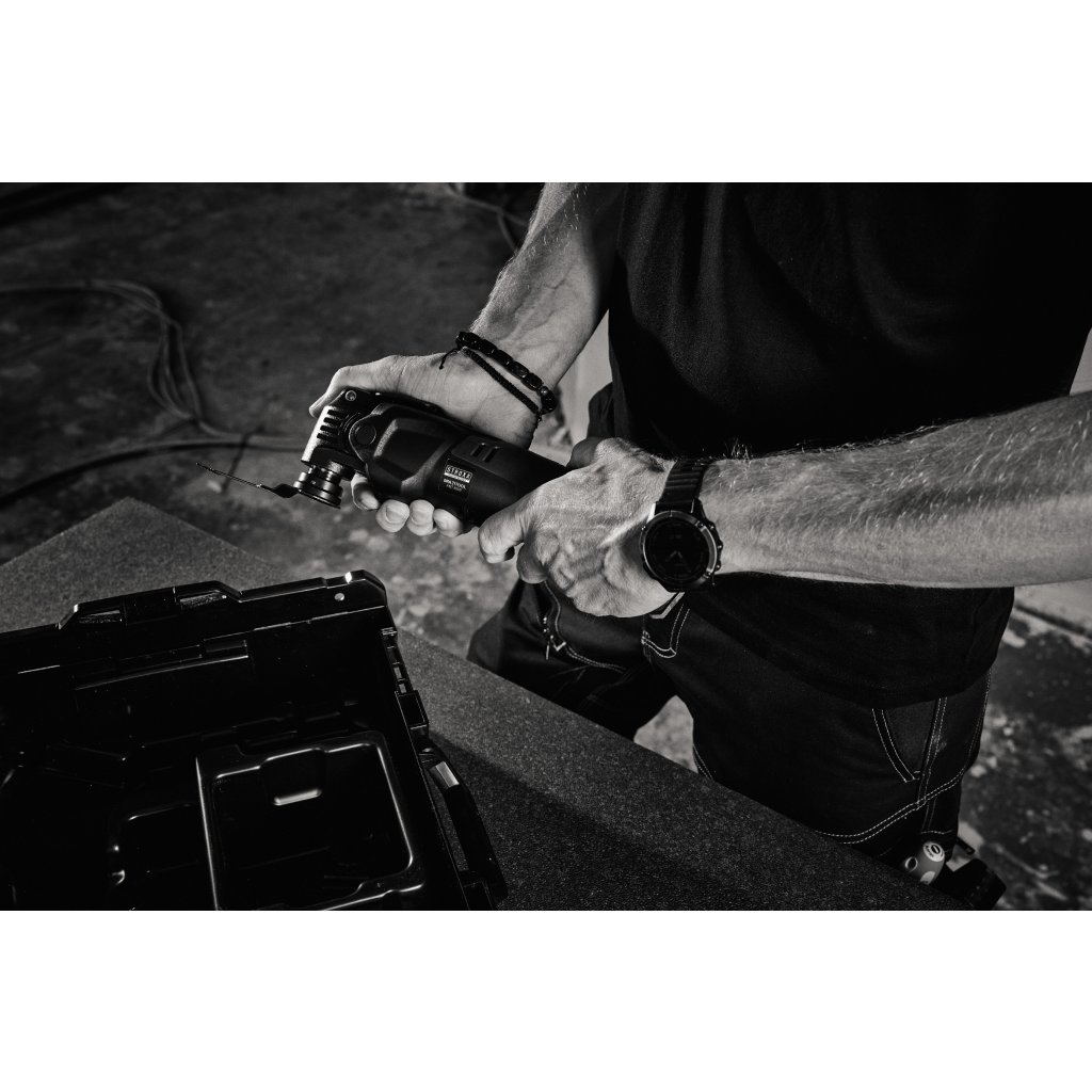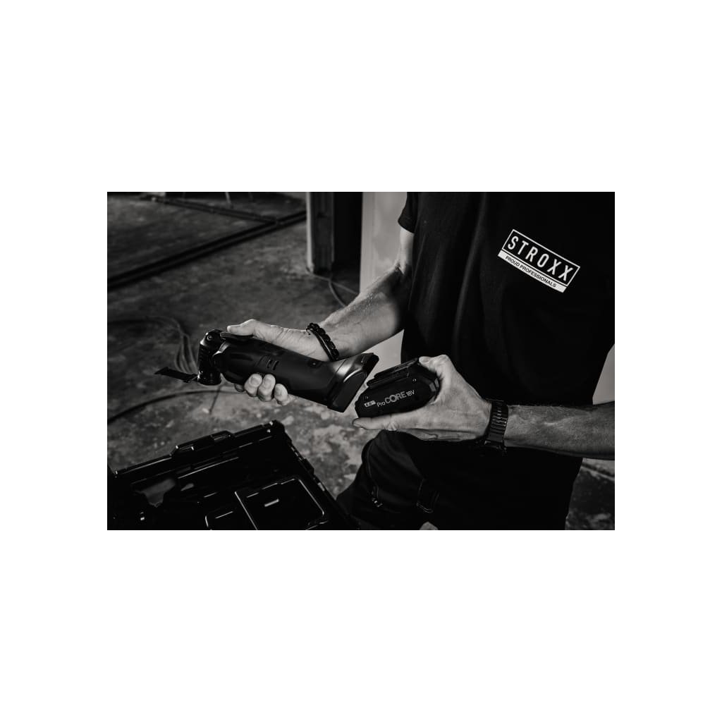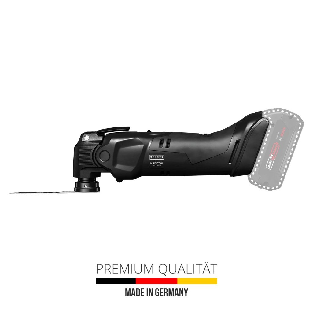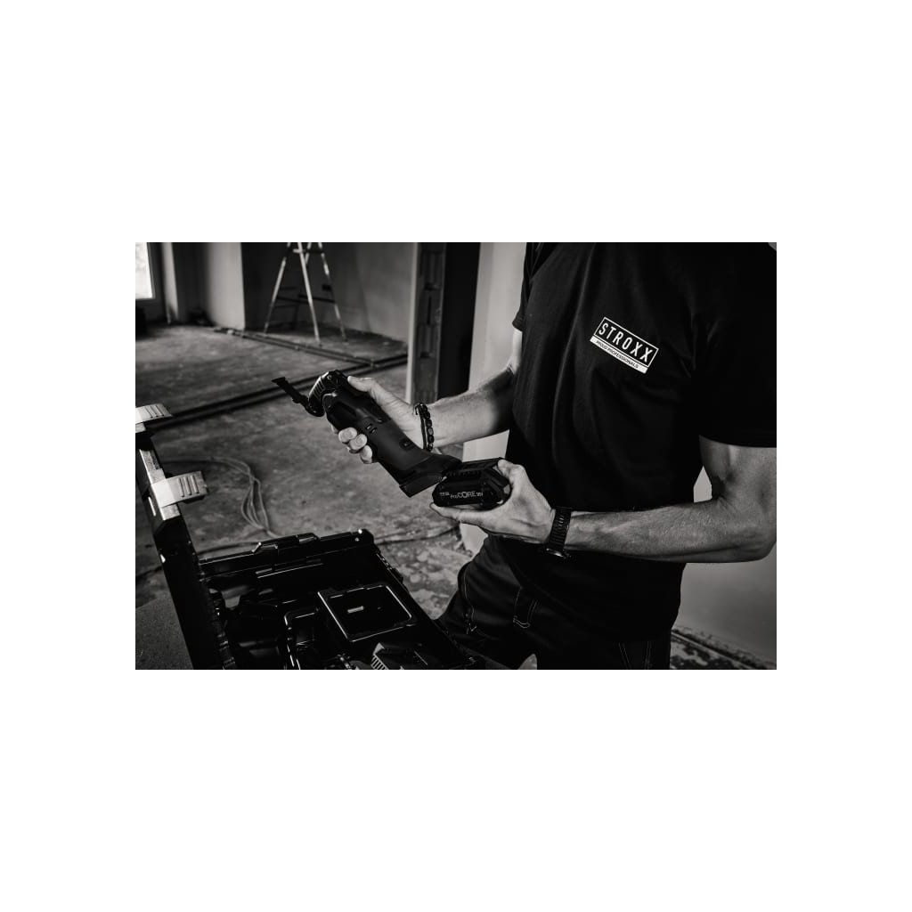 Výkonné akumulátorové multifunkčné náradie STROXX AMT 6500 na rezanie, rezanie, škrabanie a brúsenie. V závislosti od použitého nástavca ho možno použiť na drevo kov, plast a iné materiály.