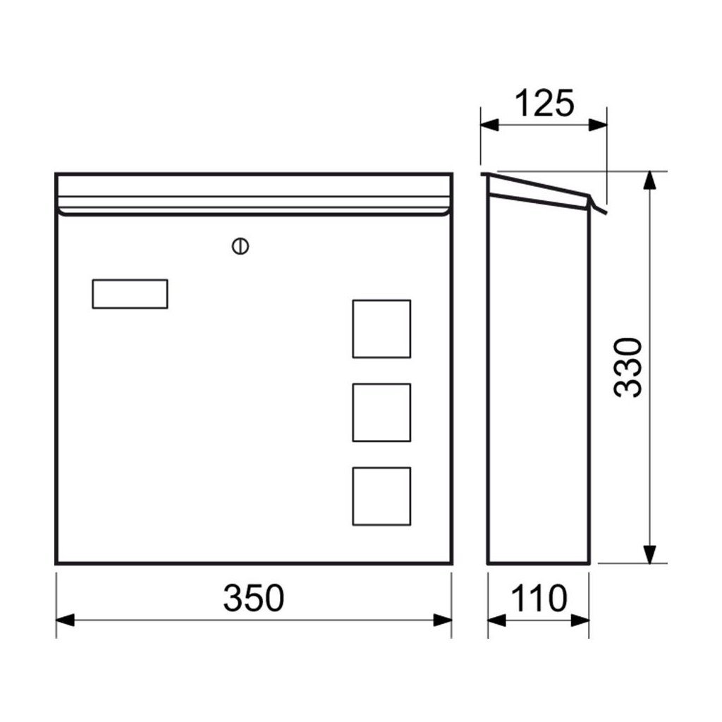 Nerezová poštová schránka 350 x 330 x 110 mm so zadným vstupom a okienkami
