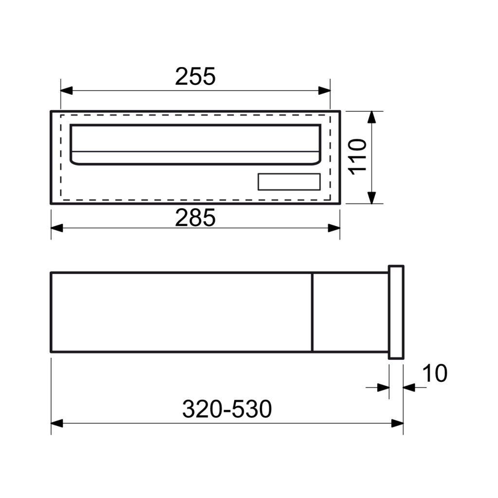Rozmery š/v/h: 285 x 110 x 320-530 mm