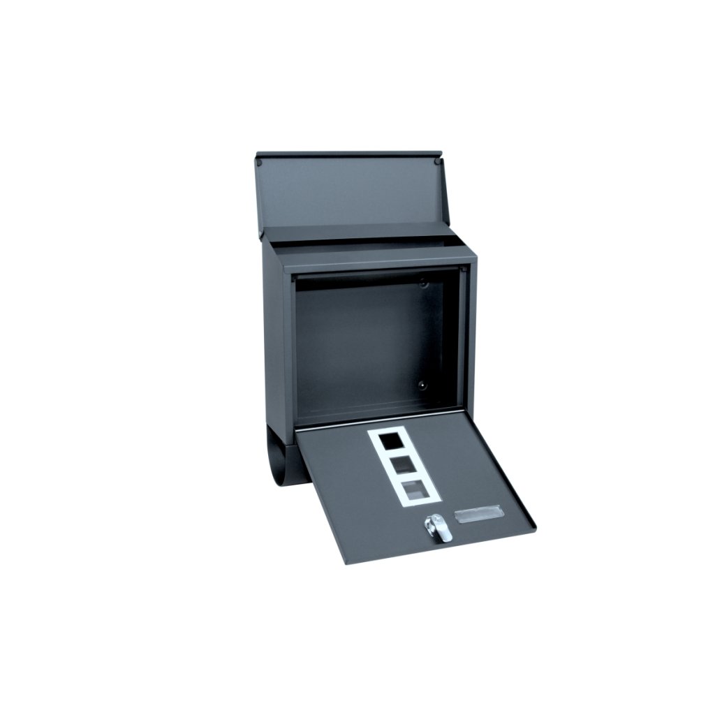 Oceľová poštová schránka 305 x 385 x 120 mm s oknami a rúrkou - antracitová