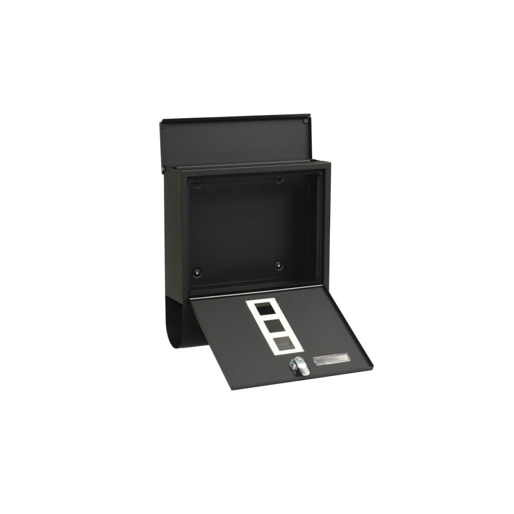 Oceľová poštová schránka 310 x 335 x 100 mm s oknami a rúrkou - čierna
