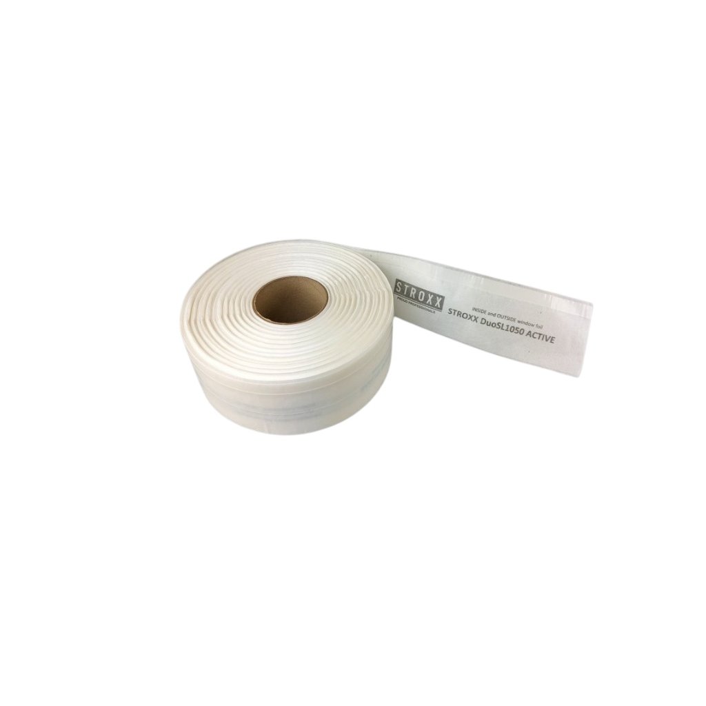 Inteligentná obojstranná fólia Stroxx DuoSL1050 Active je kombináciou špeciálnej samonastaviteľnej plastovej fólie a lepiaceho rúna. Izolačná fólia má variabilnú hodnotu Sd 0,5 - 25 m napriek plnej lepiacej strane. Pri použití v interiéri aj exteriéri tak dokáže regulovať priepustnosť vodných pár a zabezpečiť tak celoročné vysychanie škáry.