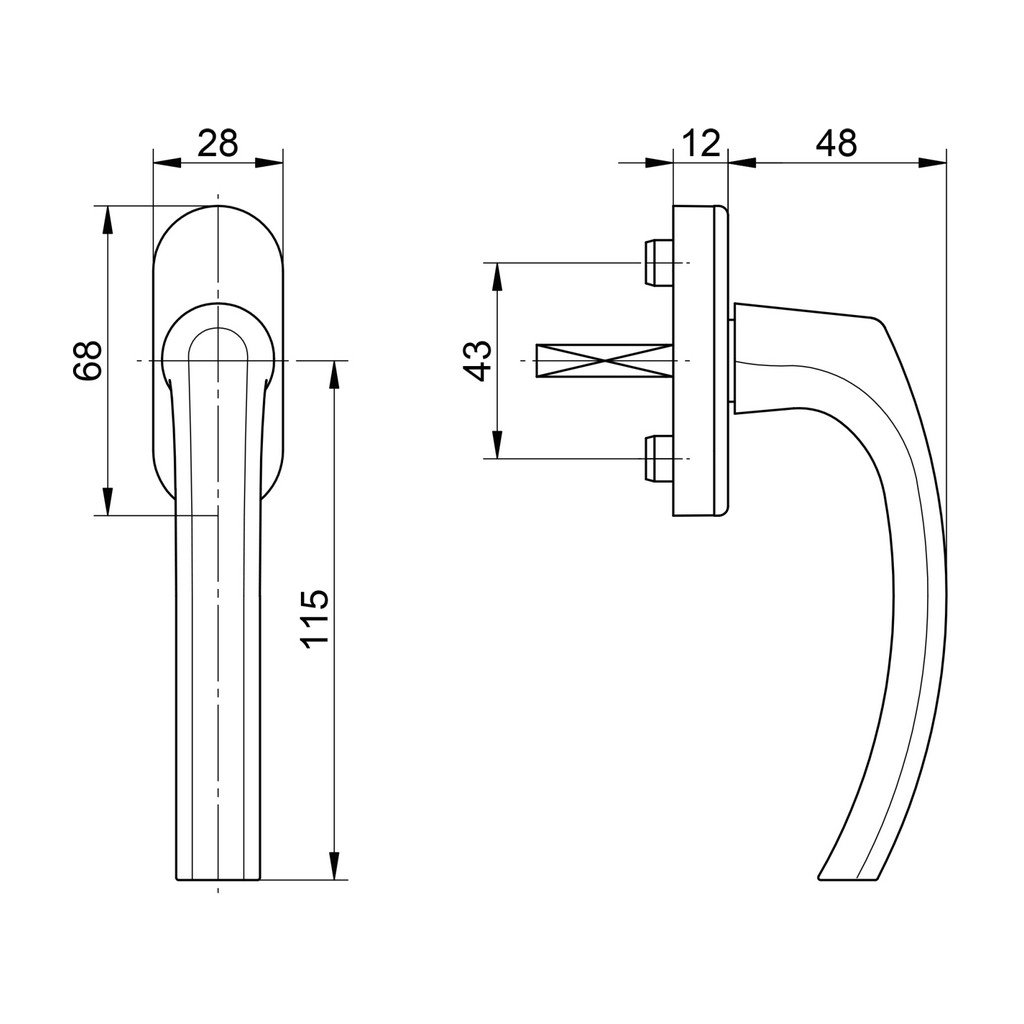 Okenná kľučka BLAUGELB FGS 1758 45°, štvorhran 37 mm, vrátane skrutiek, F9