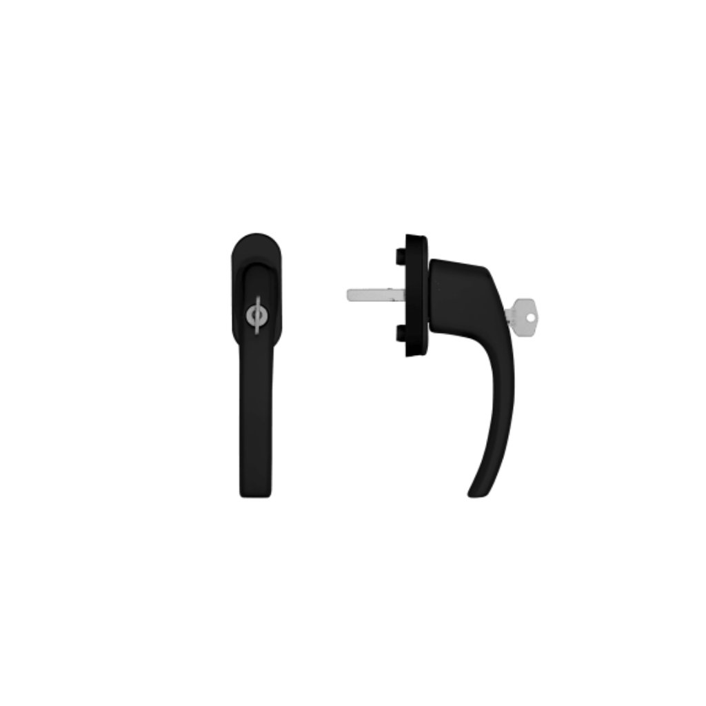 Okenná kľučka BLAUGELB FGS 1758 uzamykateľná, 45°, štvorhran 32 mm, vrátane skrutiek, RAL9005M matná čierna
