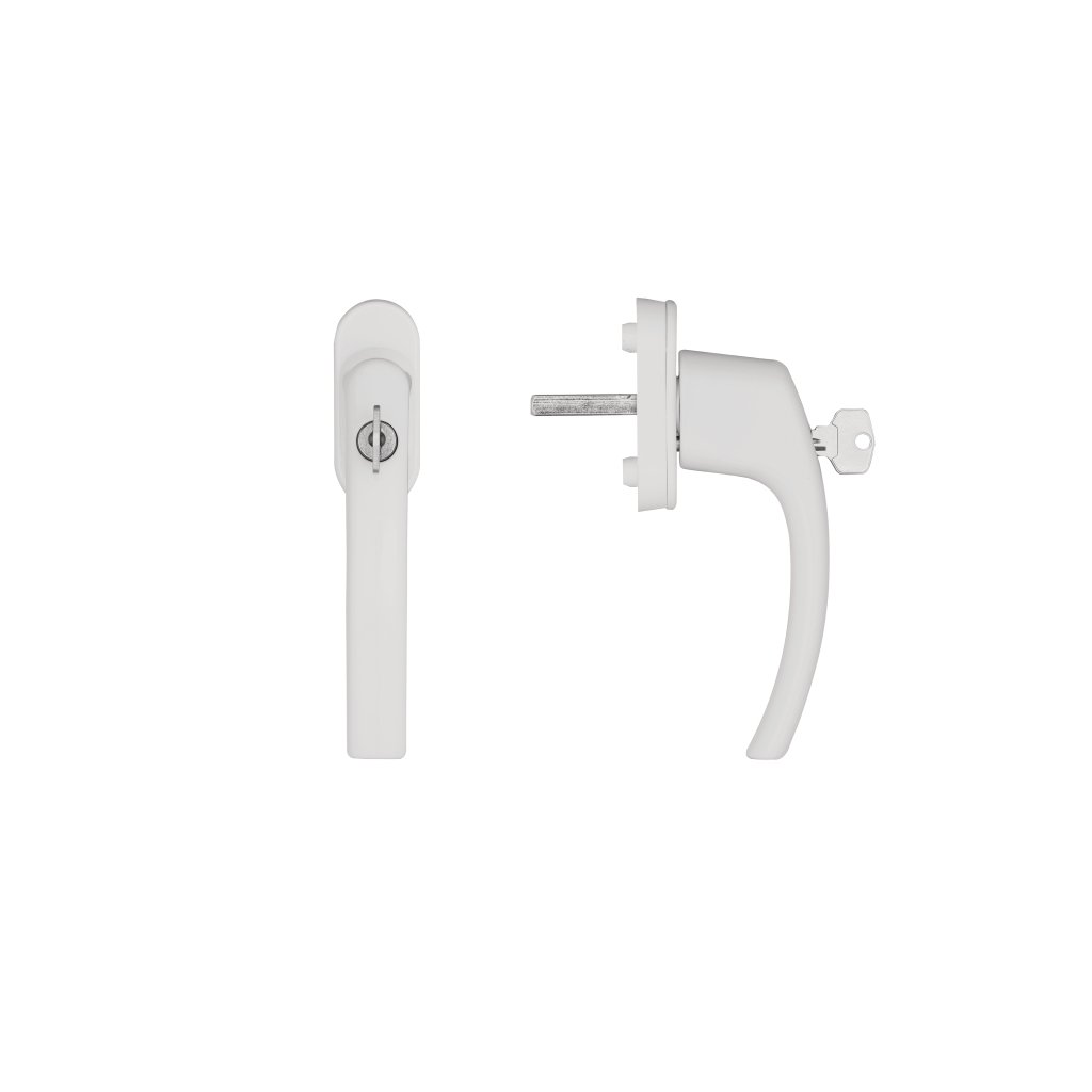 Okenná kľučka BLAUGELB FGS 1758 uzamykateľná, 45°, štvorhran 37 mm, vrátane skrutiek, biela RAL9016