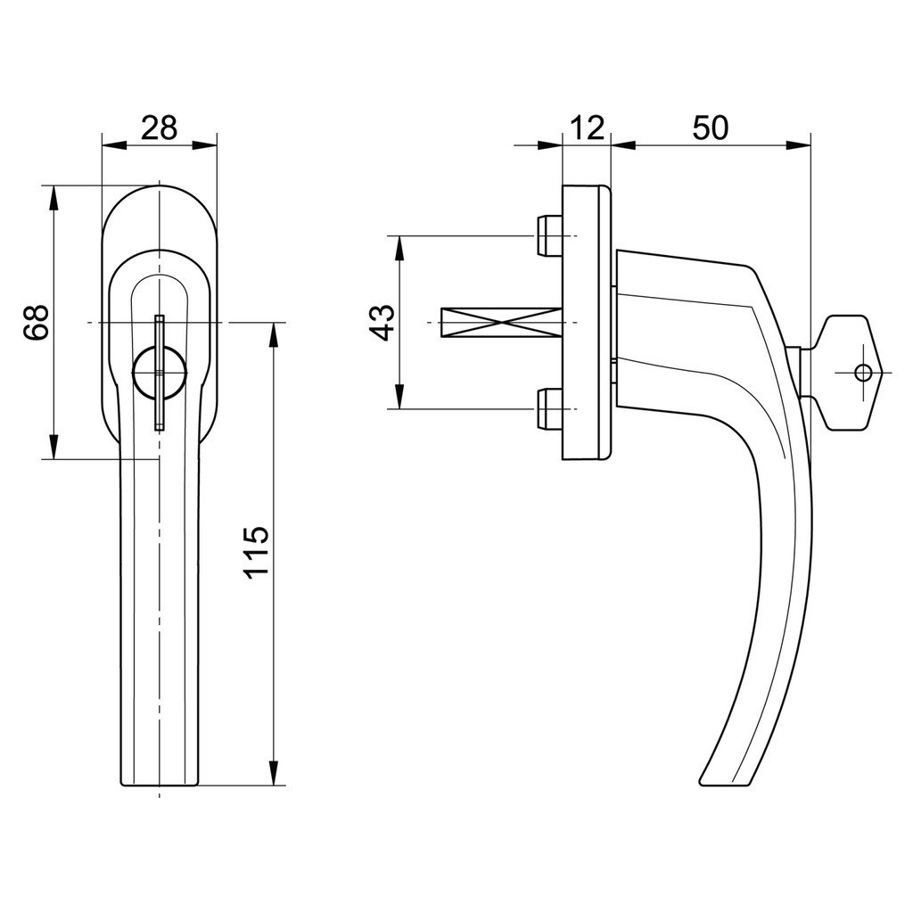 Okenná kľučka BLAUGELB FGS 1758 uzamykateľná, 45°, štvorhran 43 mm, vrátane skrutiek, F4