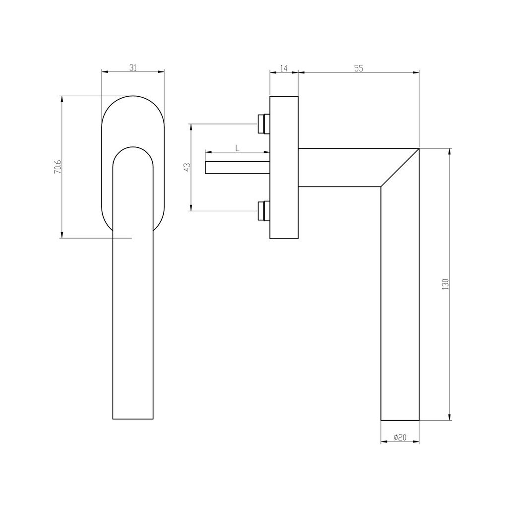 Luxusná okenná kľučka blaugelb FGS L 90° z kvalitnej nehrdzavejúcej ocele zaujme svojou eleganciou a priamočiarosťou a je ozdobou každého okna. Vďaka základnej konštrukcii s presným 4-guľôčkovým zámkom je okenná kľučka vždy v presnej polohe vzhľadom na rozetu a dotvára skvelý celkový dojem. Okenná kľučka sa dodáva spolu s predsunutým kovaním pre danú dĺžku vretena a s krúžkami na zacvaknutie vretena 10/12 mm.