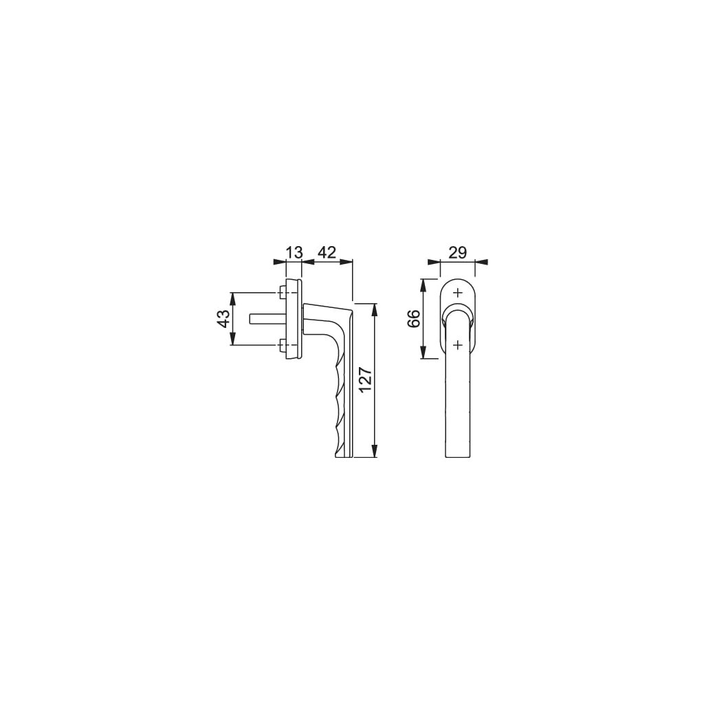 Okenná kľučka Hamburg 7/32–42 mm, M5×45 mm + M5×50 mm, F9 titán