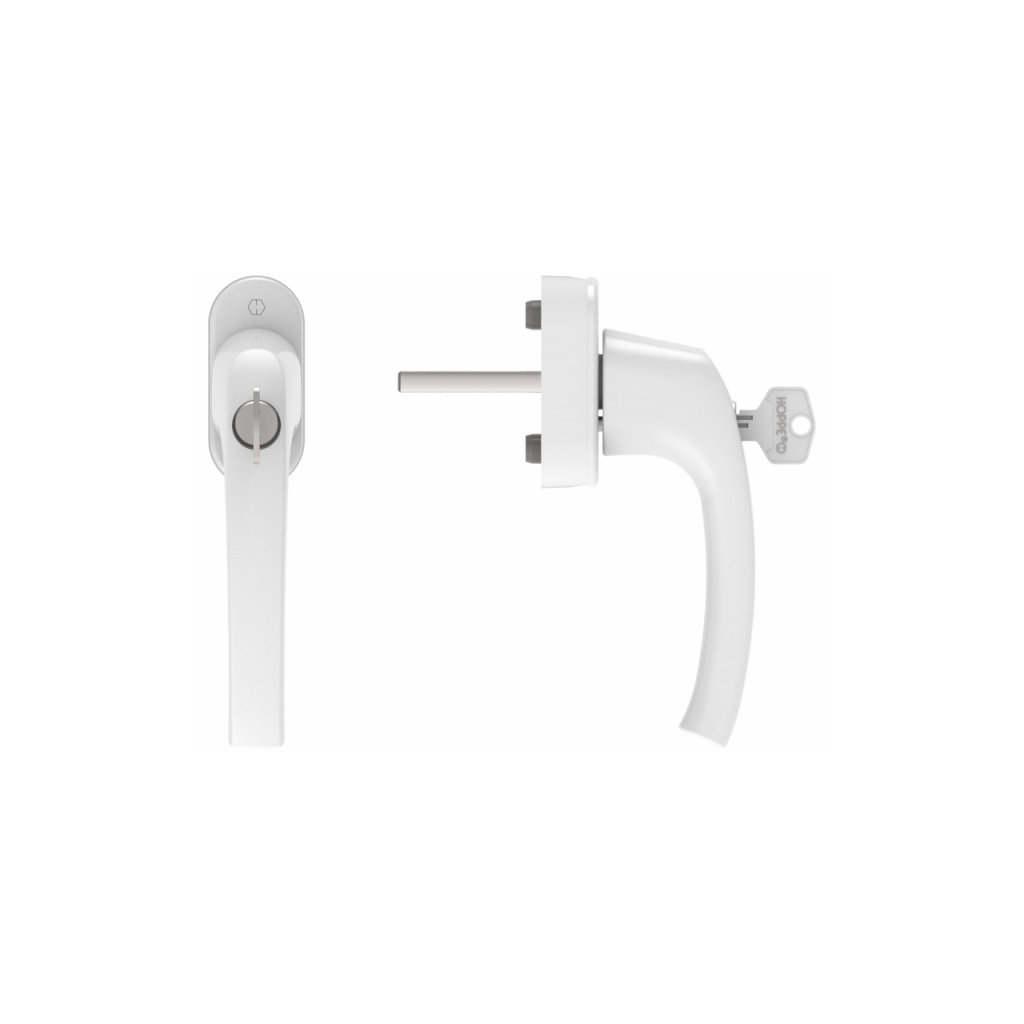 Okenná kľučka Hoppe Flensburg Secustic uzamykateľná F9016 biela/N10A, 7/32-42mm, M5x45+50, 90°